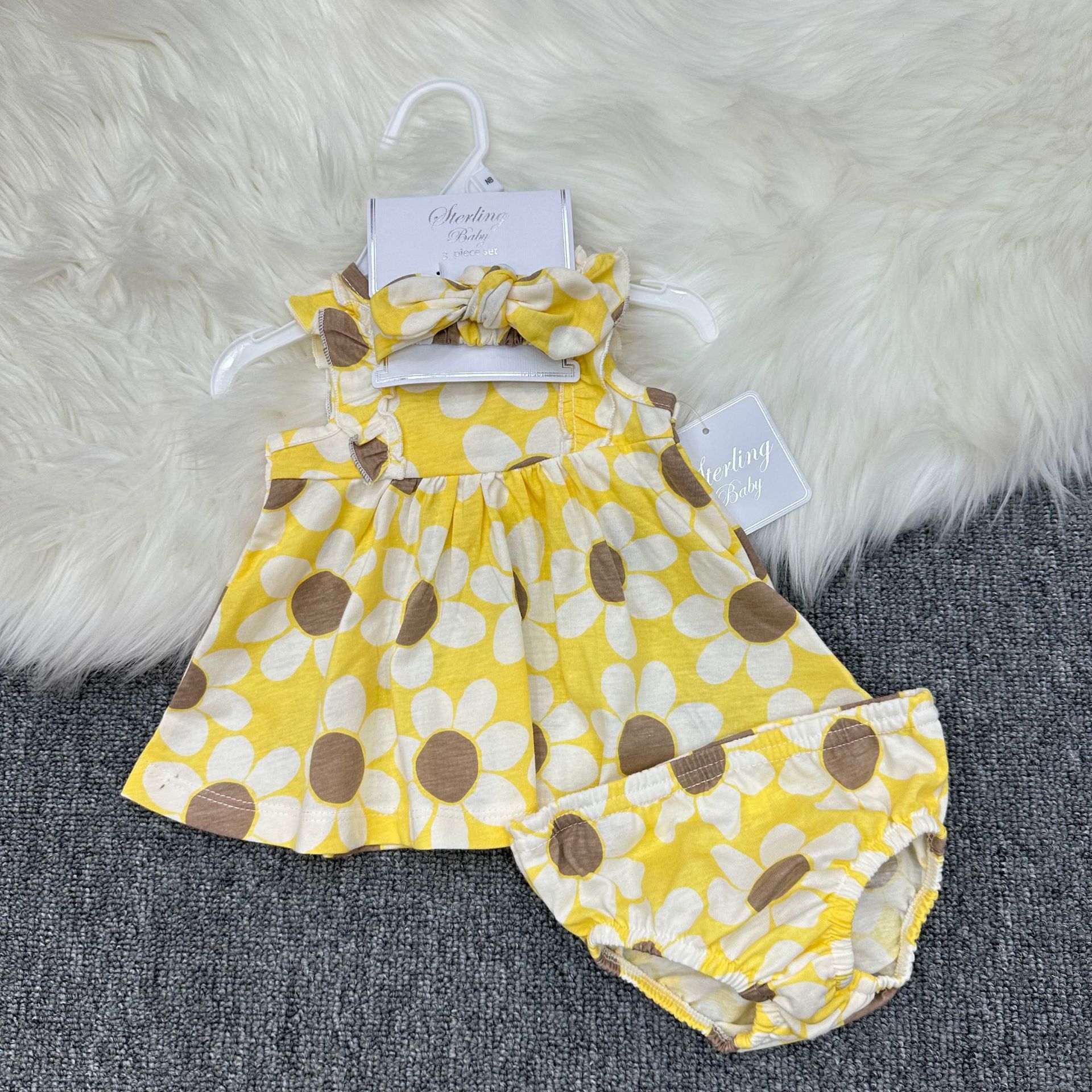 국경 간 대외 무역 소녀 반팔 원피스 꽃 무늬 머리 소매 아기 아기 3 피스 세트스토어 가기