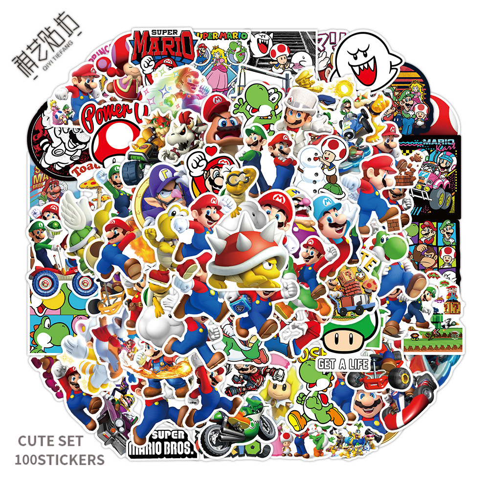 100 마리오 낙서 스티커 가방 스쿠터 방수 장식 마리오 스티커 핸드북스토어 가기