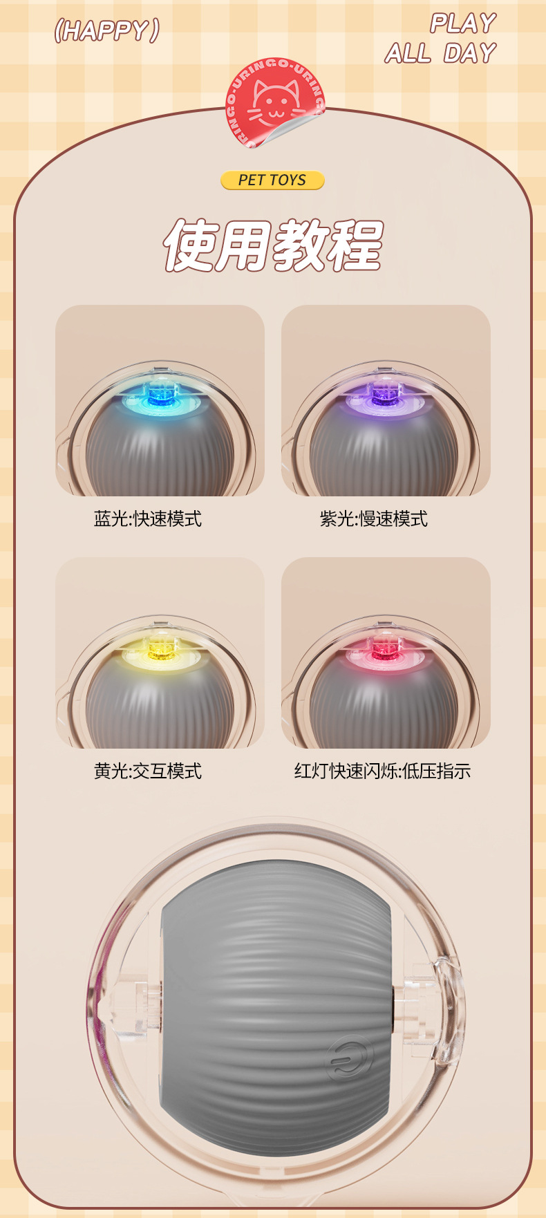 국경 지능형 중력 롤링 볼 고양이 자기 구호 고양이 공 고양이 장난감 소리 애완 동물 고양이 장난감스토어 가기