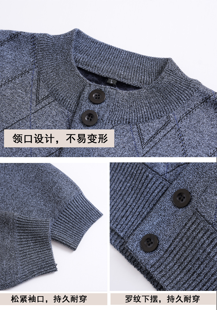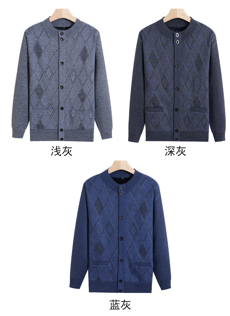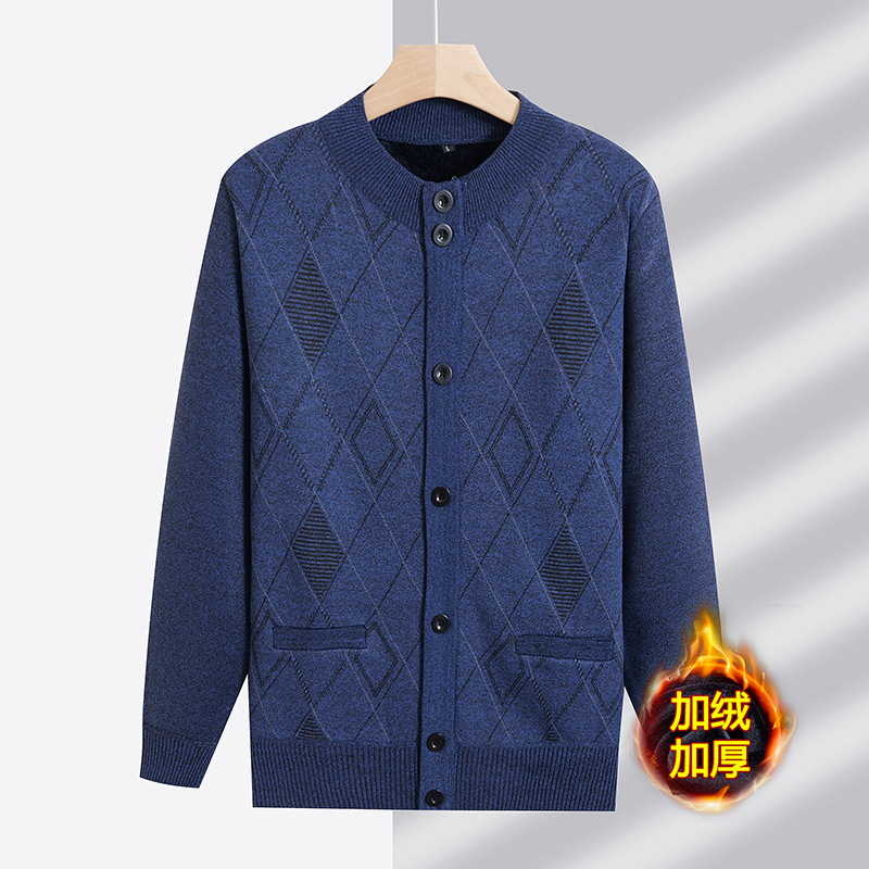 가을과 겨울 기모 두꺼운 중년 남성 니트 카디건 스웨터 재킷, 아빠를위한 수직 칼라 느슨한 니트 니트 스웨터스토어 가기
