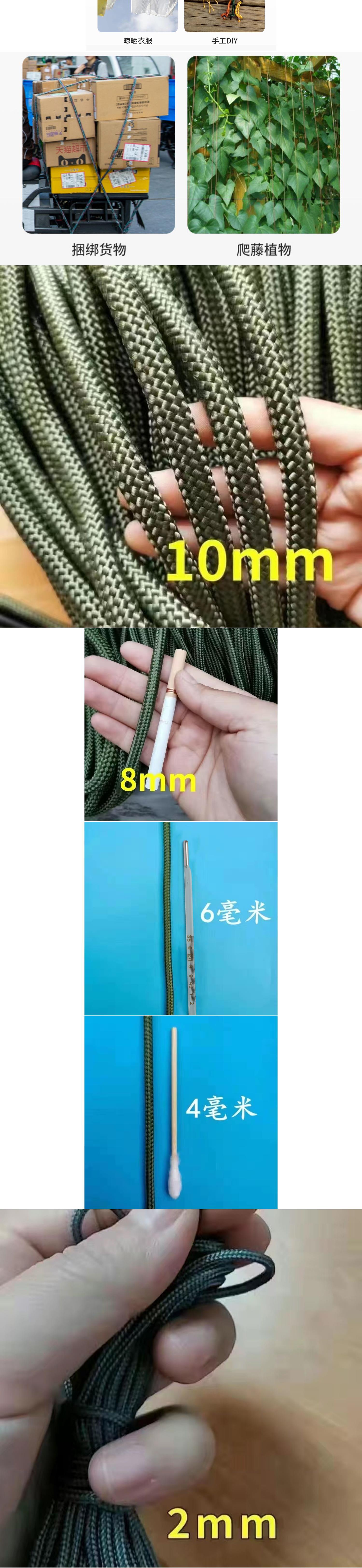 카키 로프 강력하고 내구성있는 내마모성 나일론 로프 소프트 로프 바인딩 로프 꼰 로프 바인딩 로프 의류 건조 로프스토어 가기