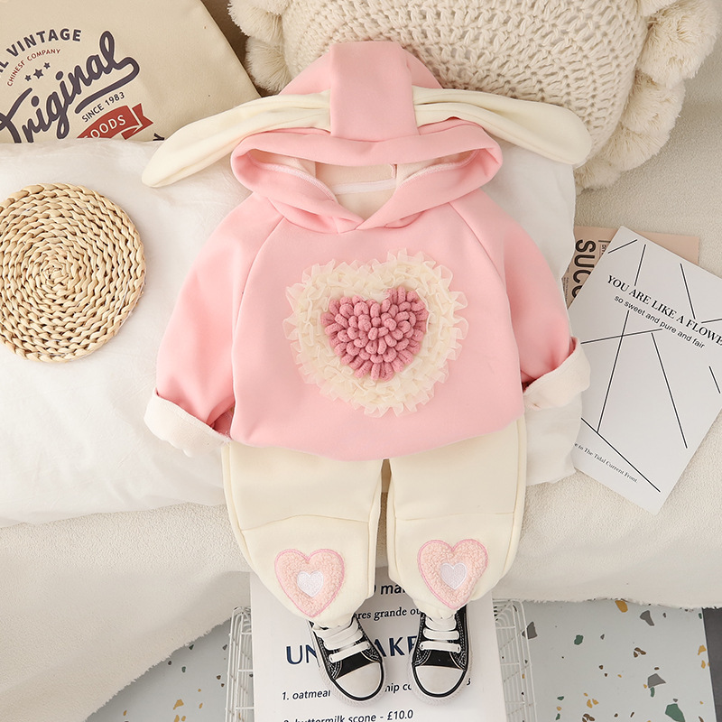 소녀들의 가을과 겨울 사랑 토끼 귀 세트 2024 가을 새 어린이 아기 서양식 한국 어린이 땀