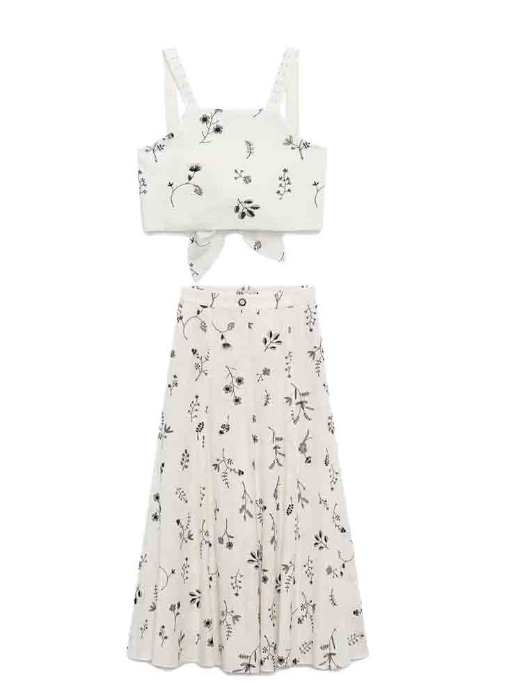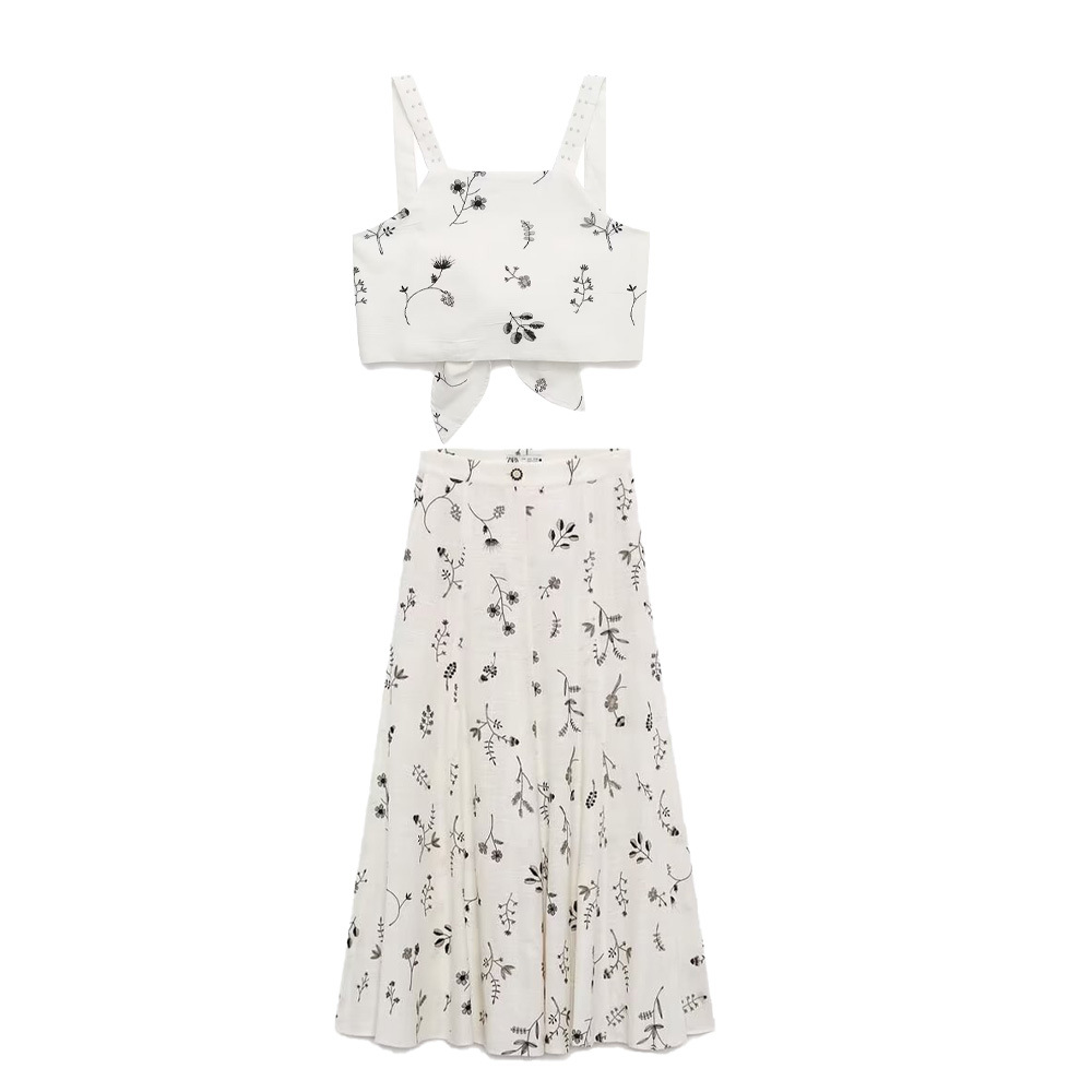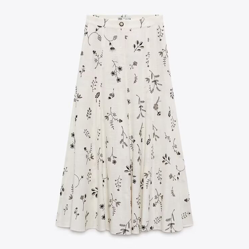 Zatrax2024 유럽과 미국의 새로운 세트 여성의 우아한 높은 허리 슬리밍 리넨 혼합 꽃 자수 스커트
