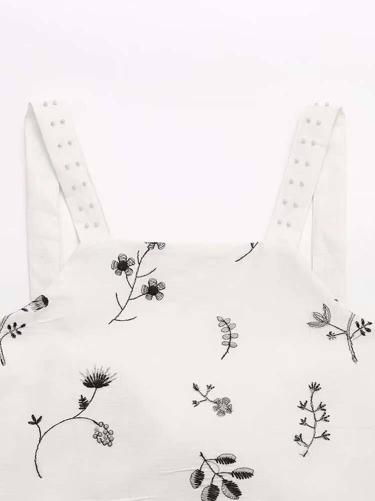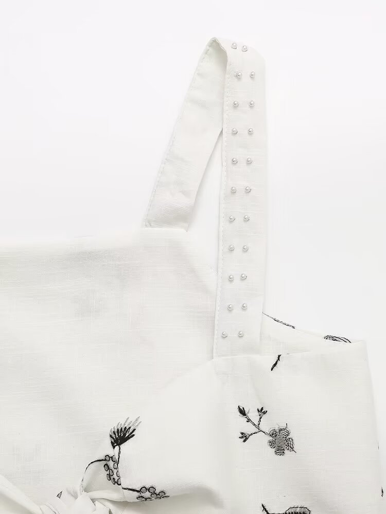 Zatrax2024 유럽과 미국의 새로운 세트 여성의 우아한 높은 허리 슬리밍 리넨 혼합 꽃 자수 스커트스토어 가기