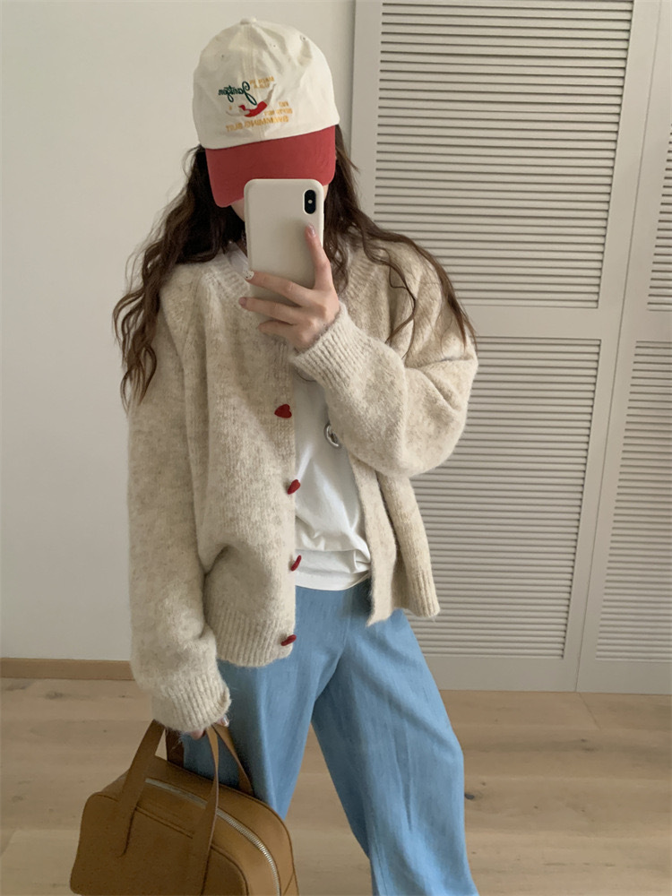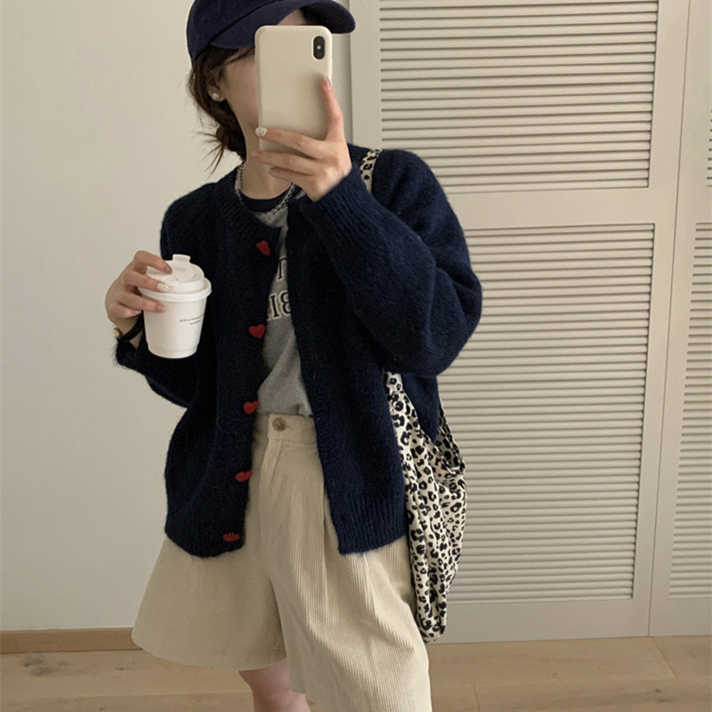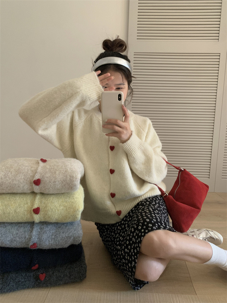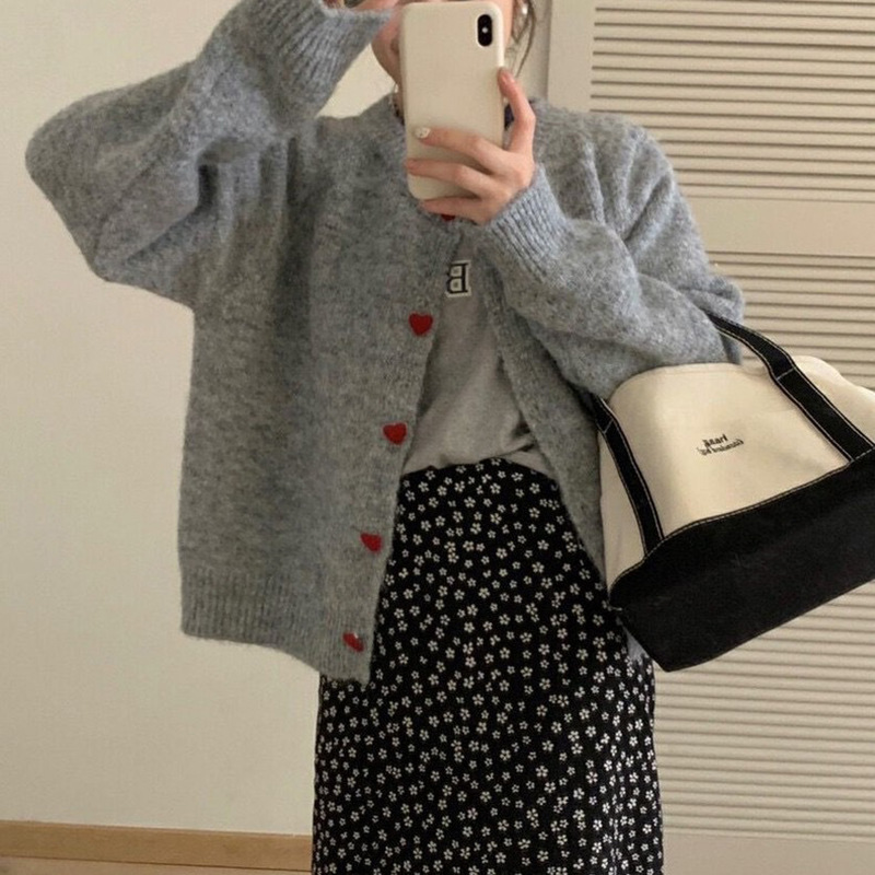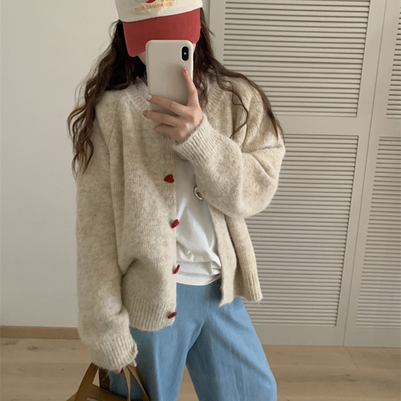 아카데미 스타일 달콤한 사랑 버튼 소프트 왁스 니트 카디건 탑 여성의 가을 새로운 느슨한 긴 소매 스웨터 코트 여성스토어 가기