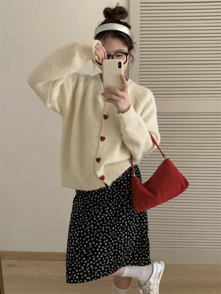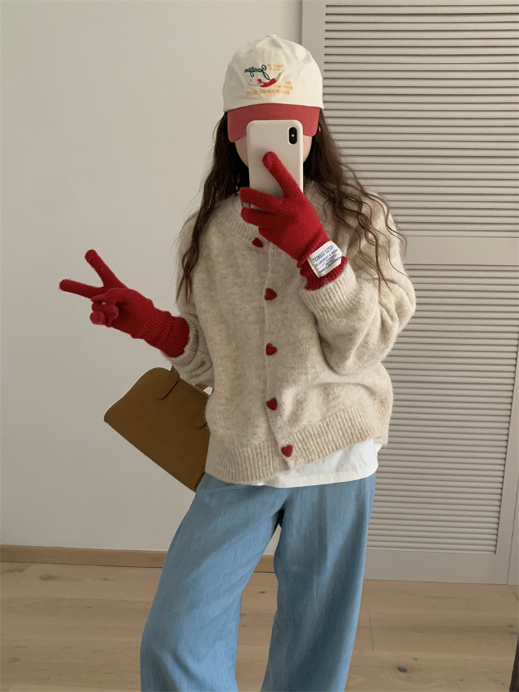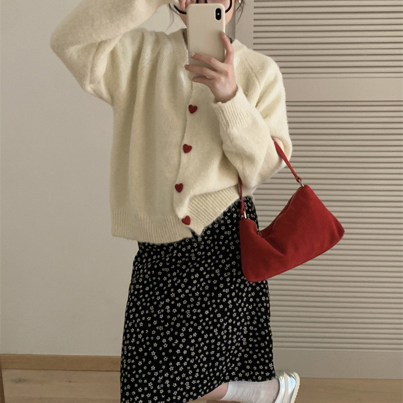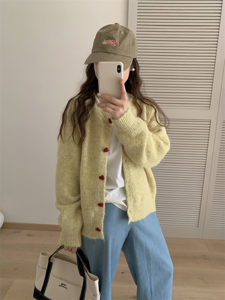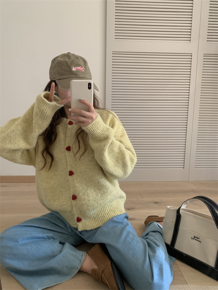 아카데미 스타일 달콤한 사랑 버튼 소프트 왁스 니트 카디건 탑 여성의 가을 새로운 느슨한 긴 소매 스웨터 코트 여성스토어 가기