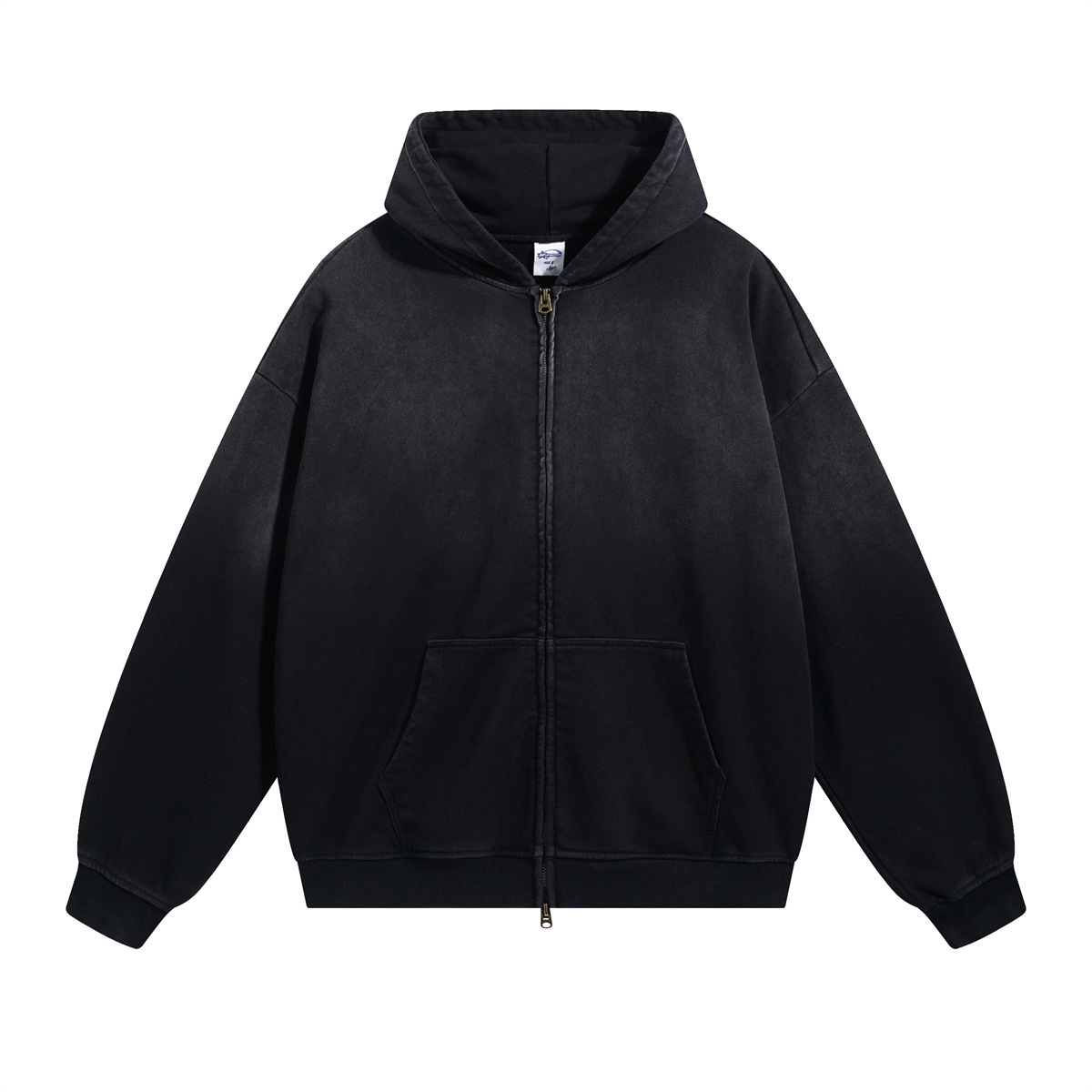 모직 테리 가을 겨울 워싱 레트로 가디건 남녀공용 트렌디 브랜드 스프레이 염색 빈티지 지퍼 450g 모직 테리 남성 스웨트셔츠 트렌디스토어 가기