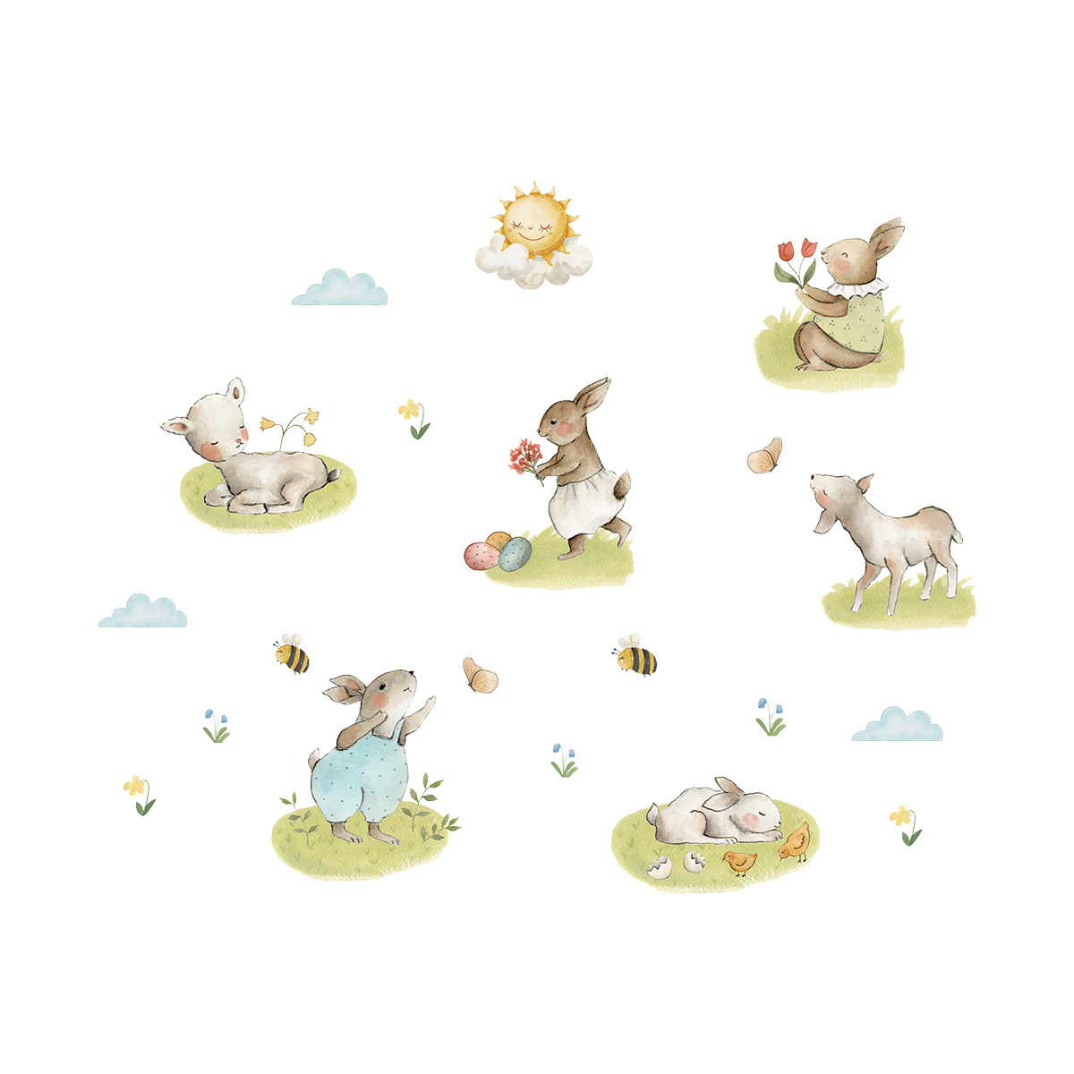 만화 황야 귀여운 토끼 자기 접착 벽 스티커 Ins 스타일 어린이 방 침실 거실 장식 스티커 BR0927F
