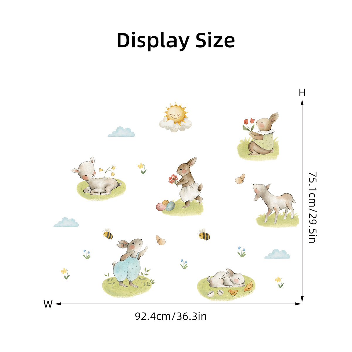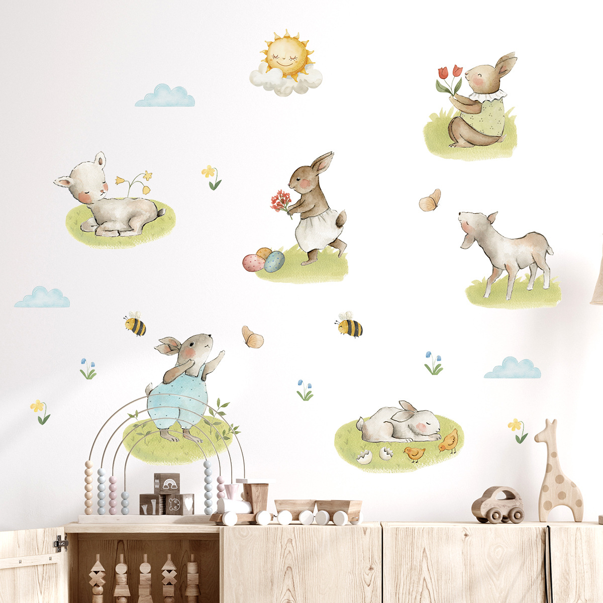 만화 황야 귀여운 토끼 자기 접착 벽 스티커 Ins 스타일 어린이 방 침실 거실 장식 스티커 BR0927F스토어 가기