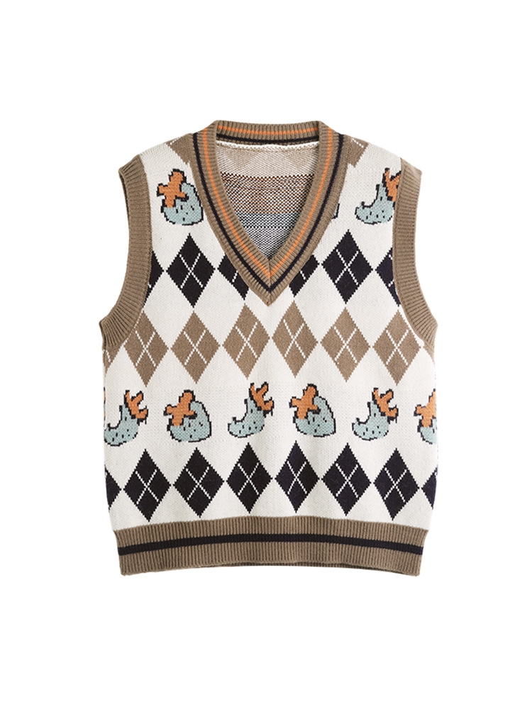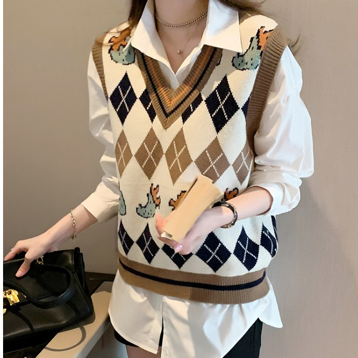 여성을위한 유행 인쇄 스웨터 조끼 조끼 봄, 가을 느슨한 레이어드 민소매 양복 조끼 v 넥 스웨터 유행 여성스토어 가기