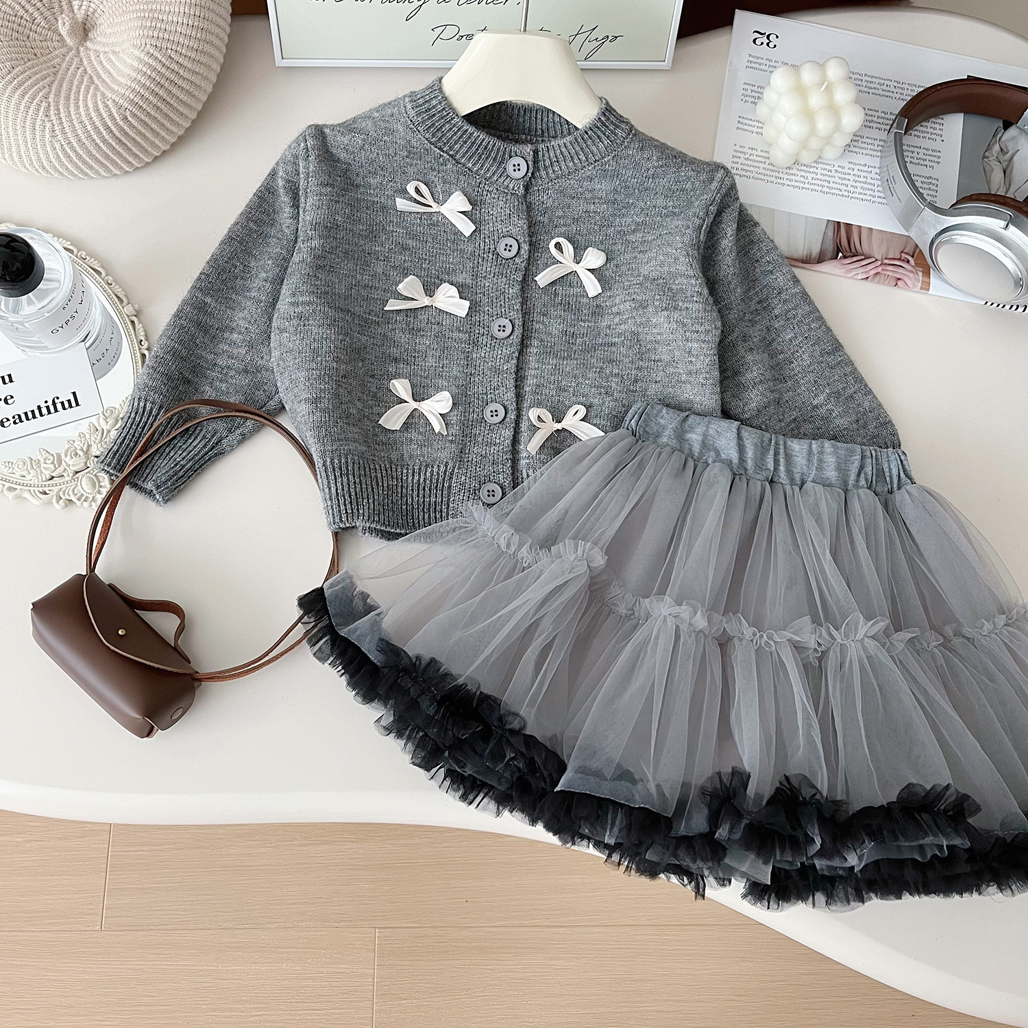 소녀 스웨터 2024 새로운 가을 서양식 어린이 니트 카디건 유행 메쉬 스커트 세트스토어 가기