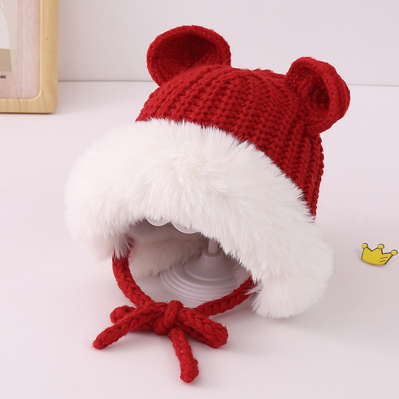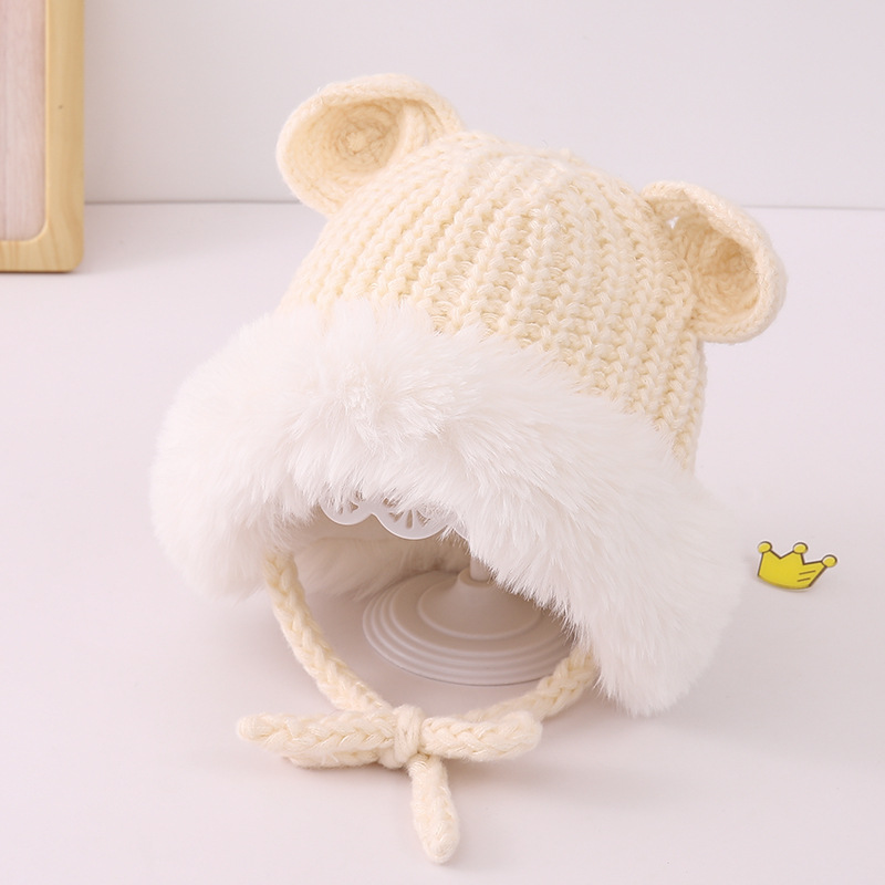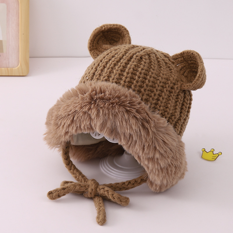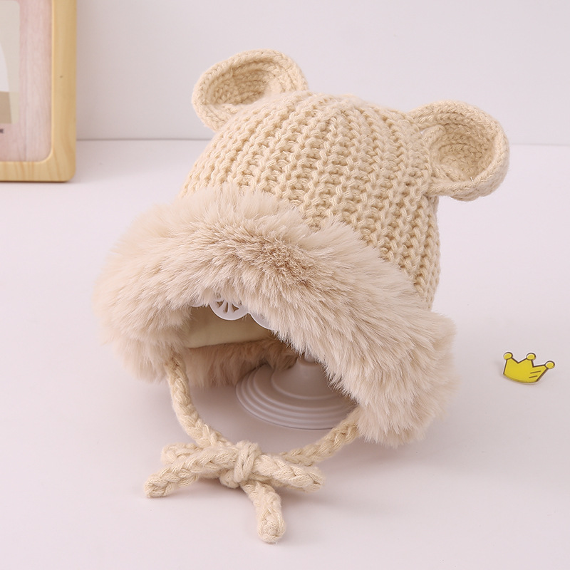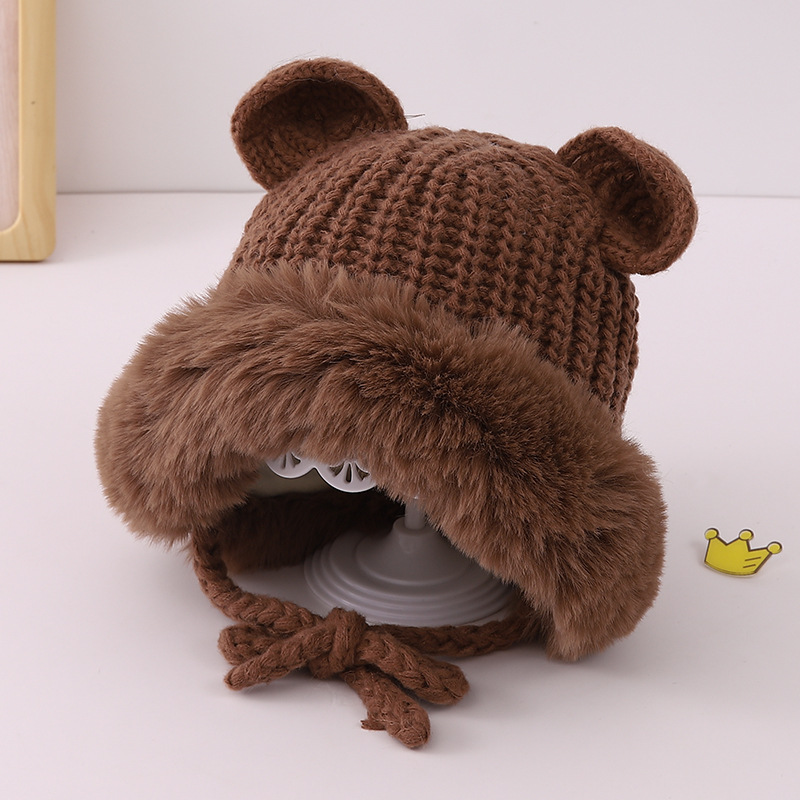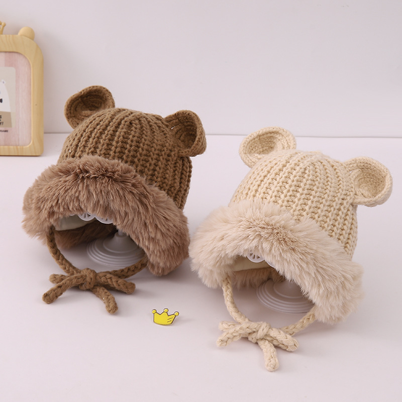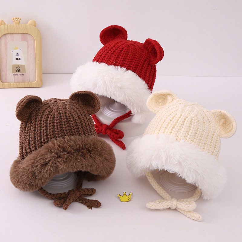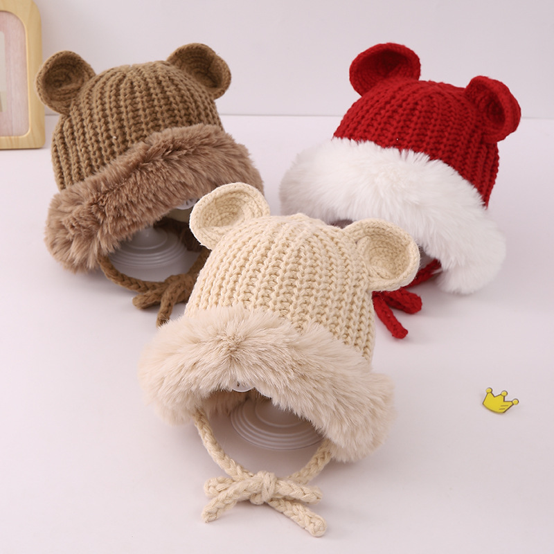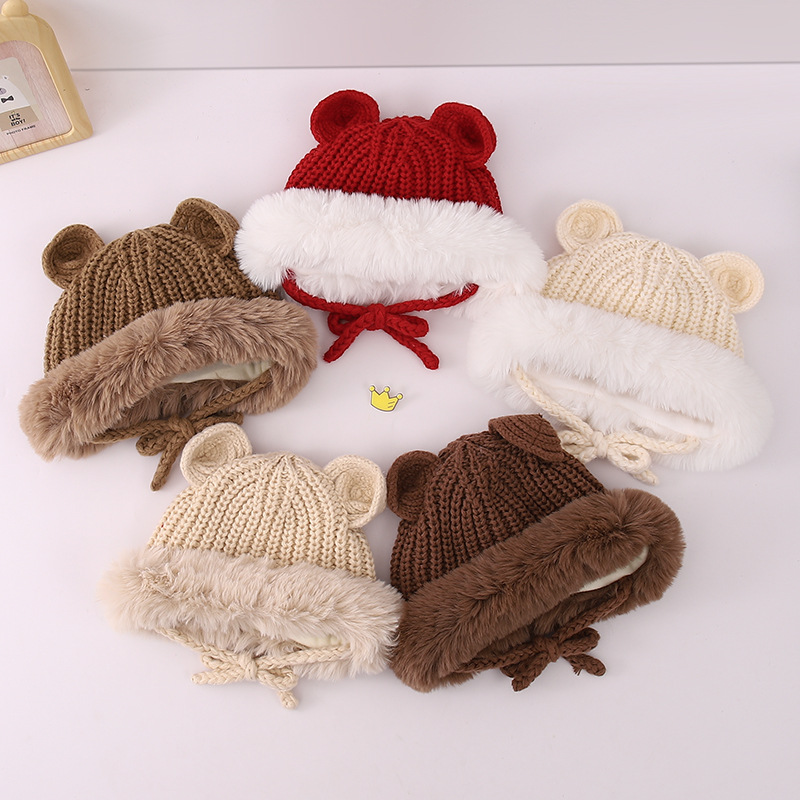 가을과 겨울 따뜻한 귀 보호 패션 푹신한 더블 레이어 소년과 소녀를위한 귀여운 외국 스타일의 봉제 니트 울 모자