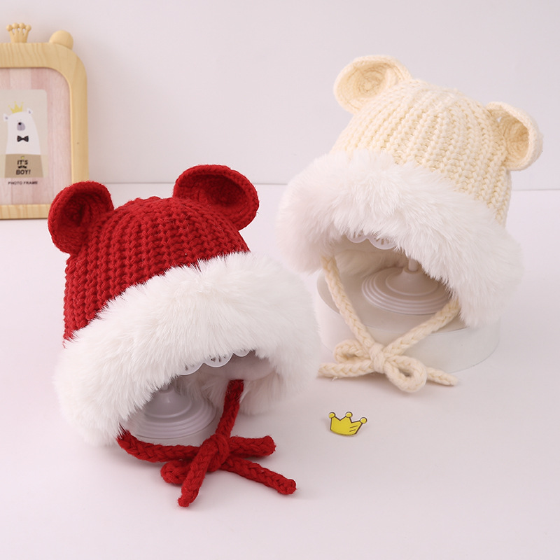 가을과 겨울 따뜻한 귀 보호 패션 푹신한 더블 레이어 소년과 소녀를위한 귀여운 외국 스타일의 봉제 니트 울 모자스토어 가기