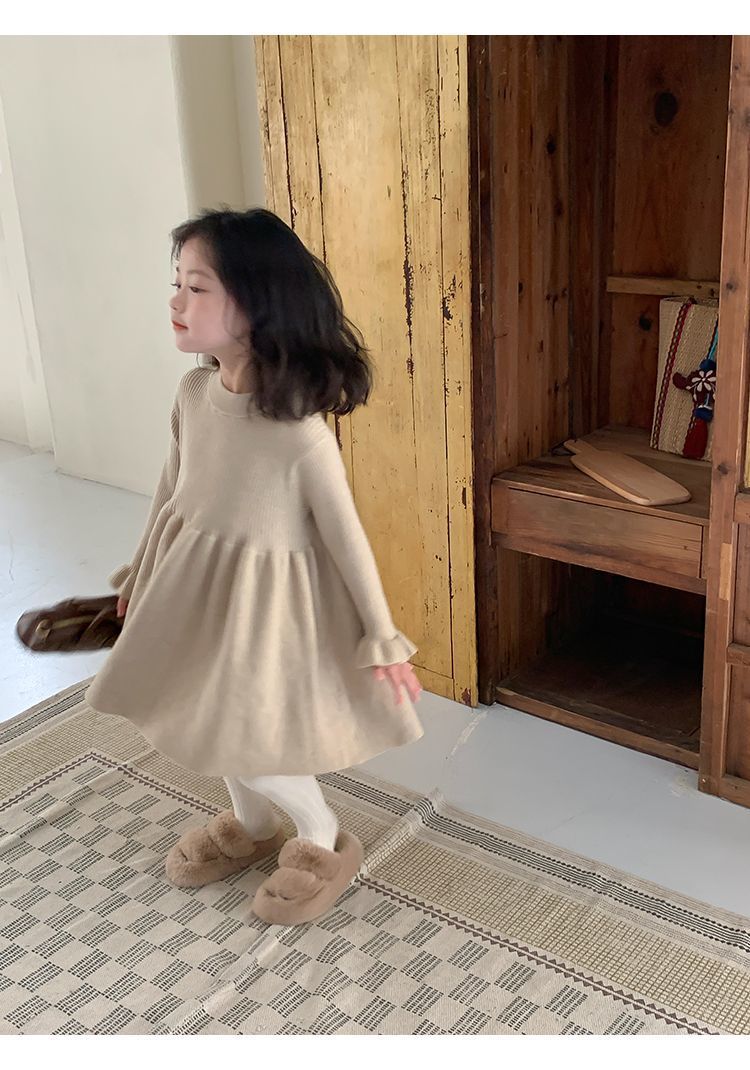여아 드레스 2025 봄 신상 아기 고급스러운 부드러운 모직 니트 스웨터 공주 드레스 패션 캐주얼