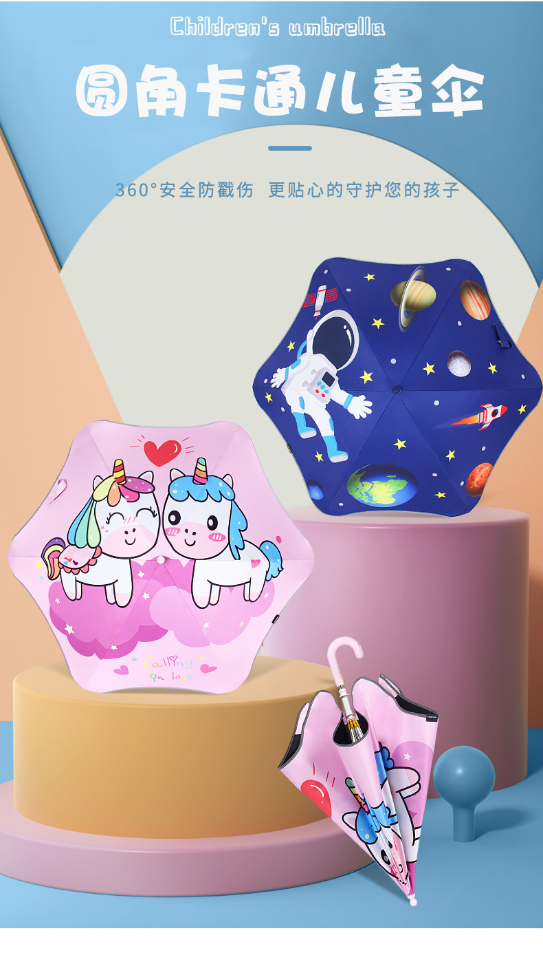 어린이 우산 둥근 어린이 우산 도매 초등학교 학생 검은 고무 이중 사용 만화 우산 광고 우산 로고 후크 우산스토어 가기