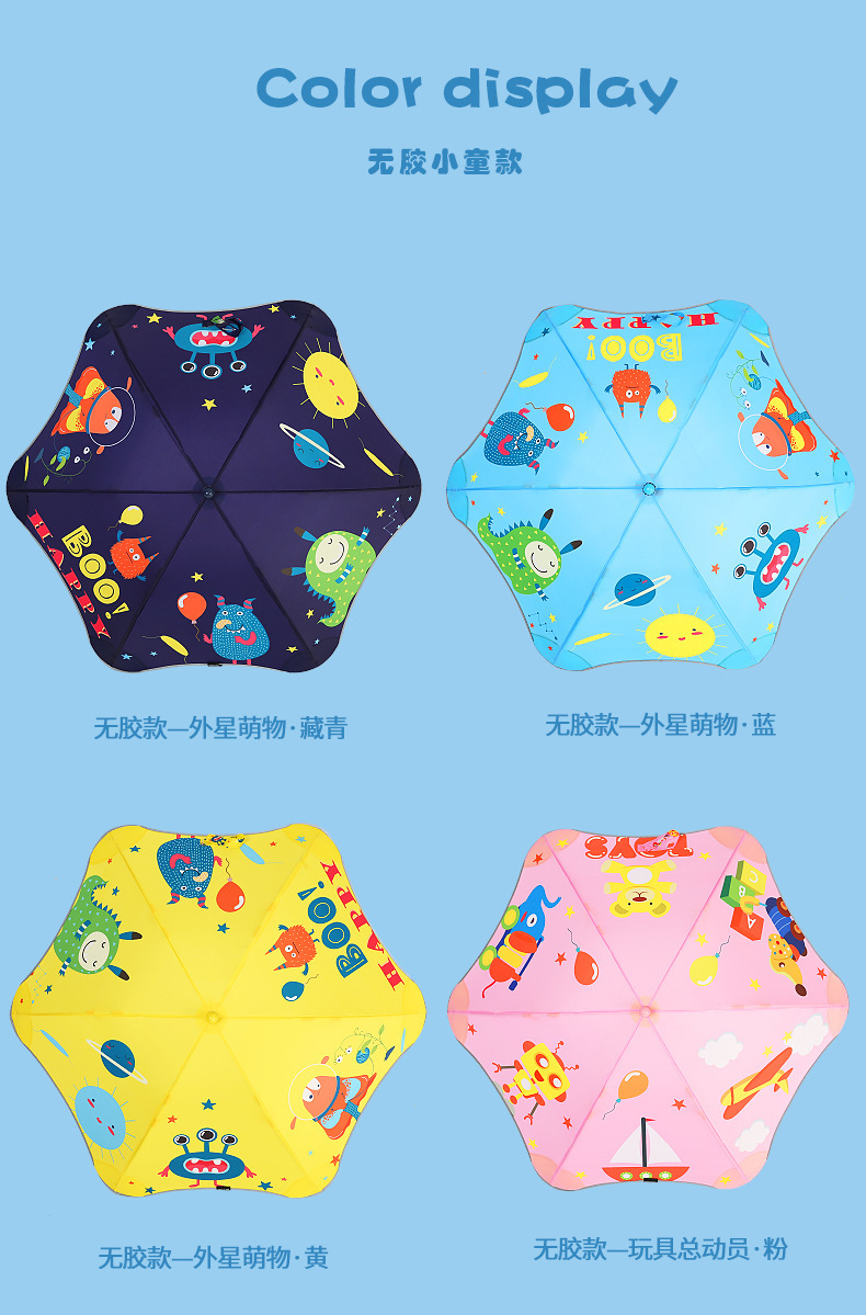 • 모서리가 둥근 비닐이 없는 어린이우산 - 하늘색 - 외계인 귀여운 것들