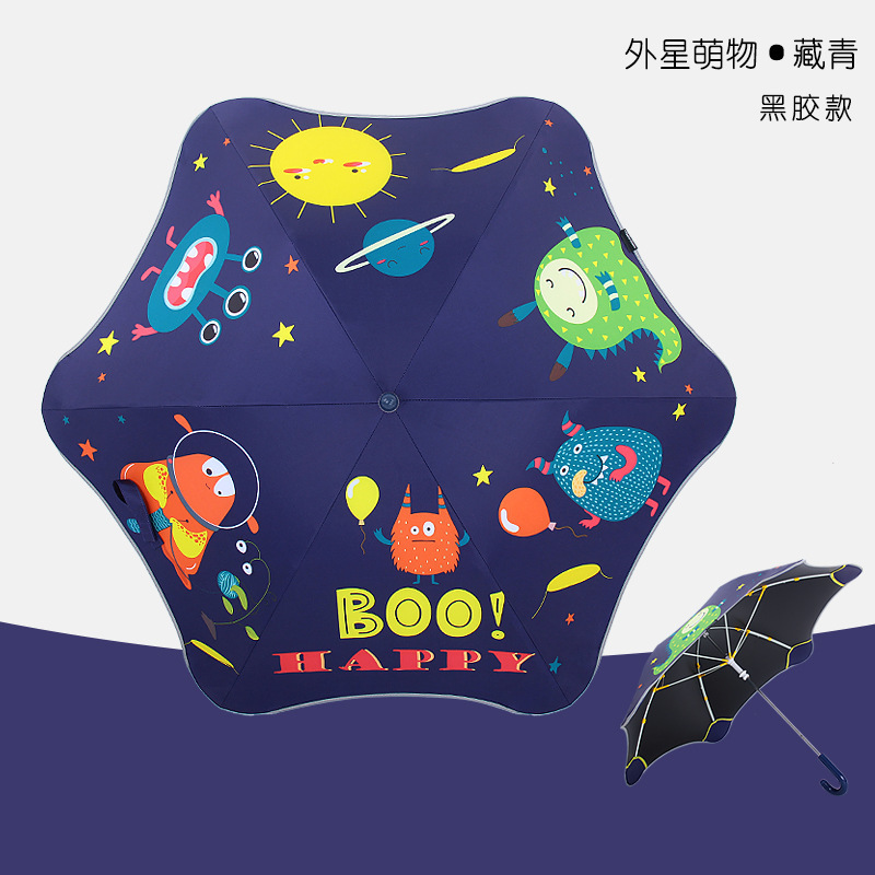 • 모서리가 둥글고 비닐이 없는 어린이우산 - 남색 - 귀여운 외계인