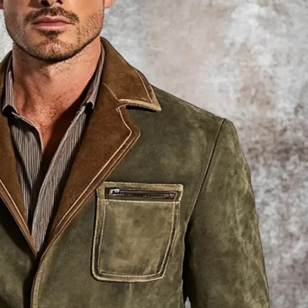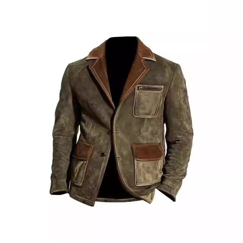 아마존 독립 남성 레트로 스웨이드 멀티 포켓 컬러 블록 칼라 야외 재킷 6789