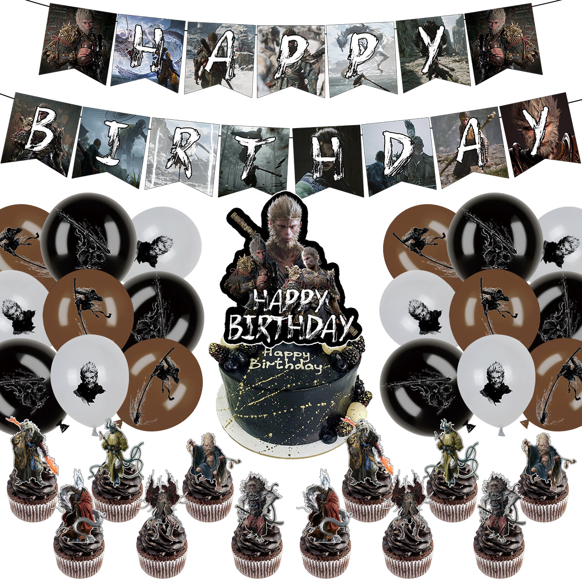 검은 신화 우콩 테마 생일 파티 장식 세트 운명 케이크 삽입 행 깃발 풍선 장면 레이아웃스토어 가기