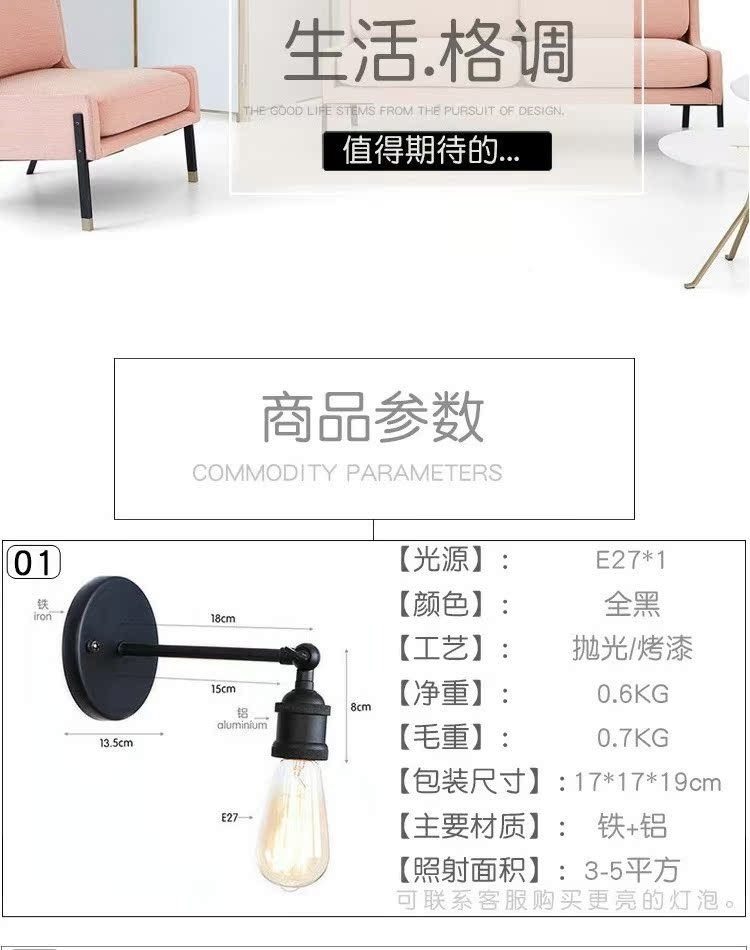 간단한 개성 호텔 레스토랑 카페 장식 철 블랙 싱글 섹션 침실 거실 북유럽 스타일 벽 램프스토어 가기