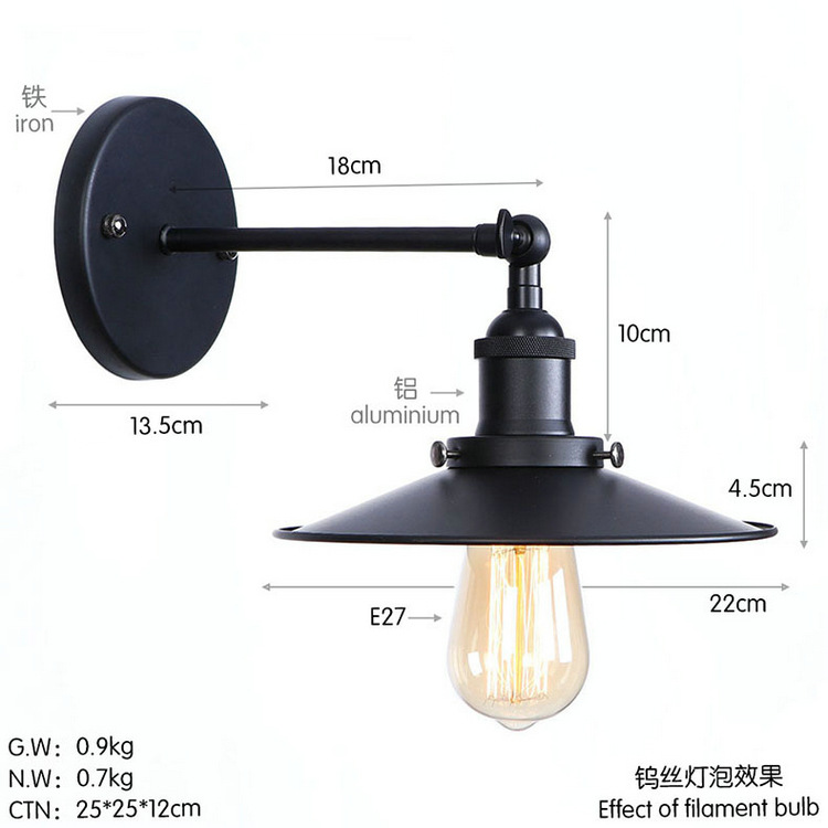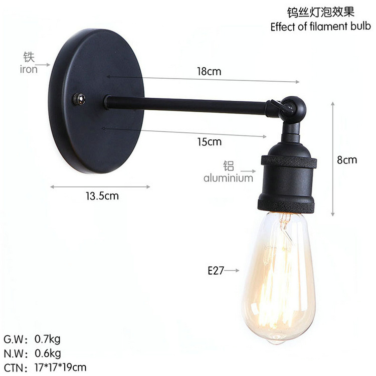 간단한 개성 호텔 레스토랑 카페 장식 철 블랙 싱글 섹션 침실 거실 북유럽 스타일 벽 램프