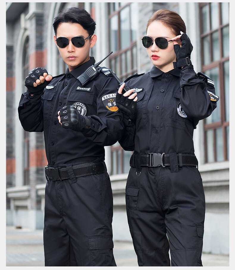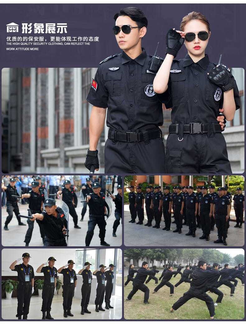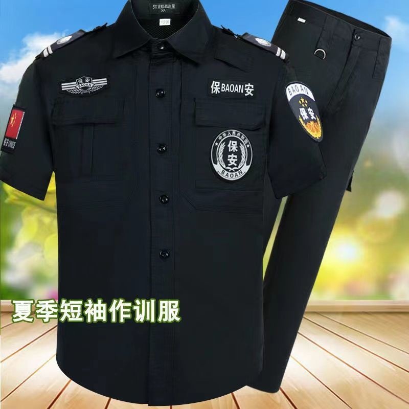 검은 색 보안 작업복 세트 남성 여름 반팔 여름 반소매 훈련 보안 유니폼 의무 의류스토어 가기