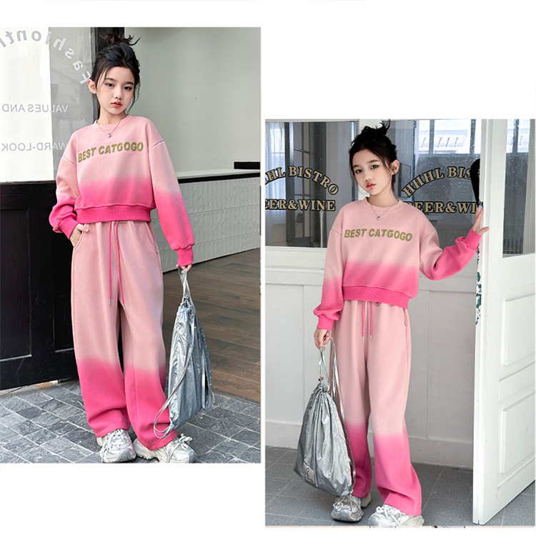 소녀 어린이 의류 서양식 유행 세트 가을 땀 2024 새로운 어린이 패션 투피스 가을 큰 어린이 여성 의류스토어 가기
