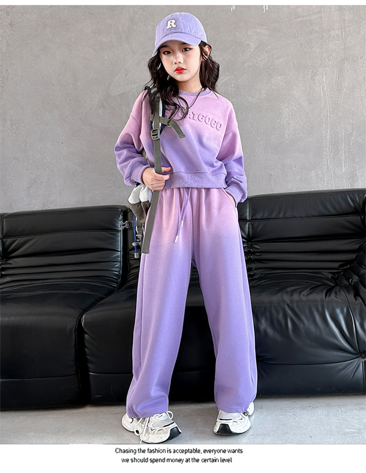 소녀 어린이 의류 서양식 유행 세트 가을 땀 2024 새로운 어린이 패션 투피스 가을 큰 어린이 여성 의류
