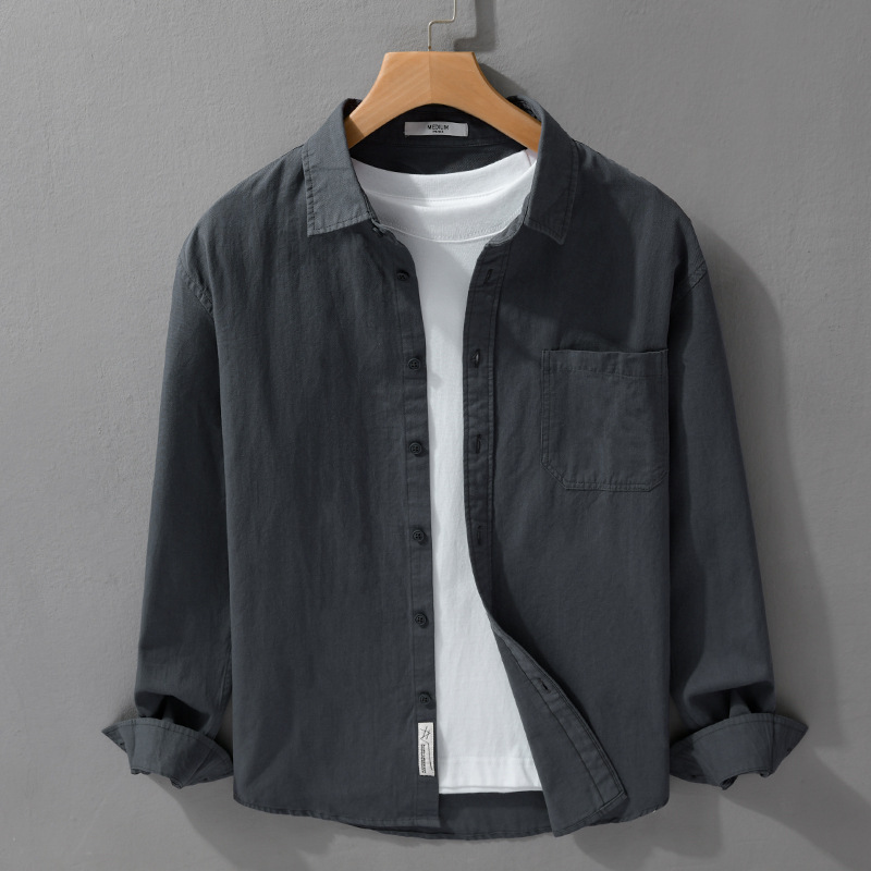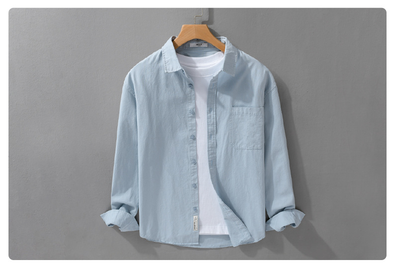 봄과 가을 남자의 간단한 올 매치 긴팔 셔츠 면화 편안한 통기성 신선한 캐주얼 셔츠 9972