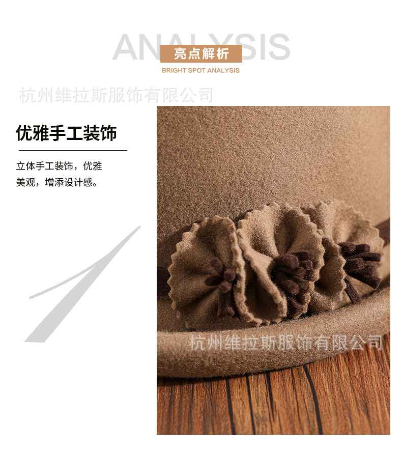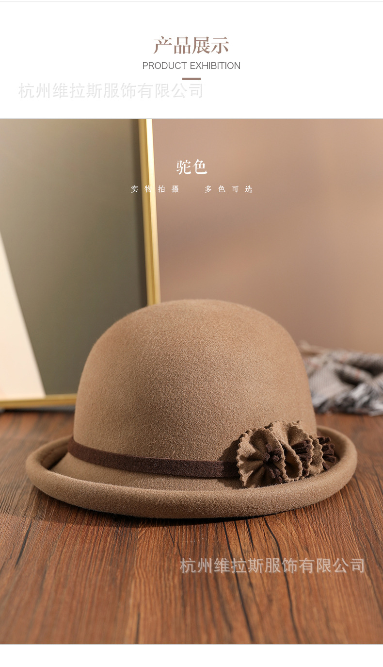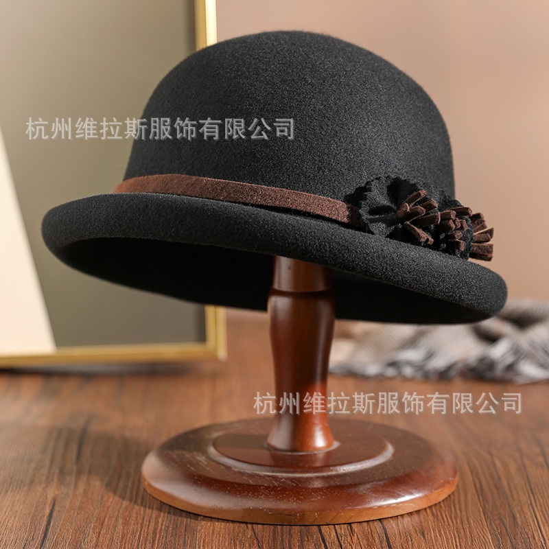 부타 가을과 겨울 모자 여성의 영국 톱 모자 순수 울 모직 모자 컬링 레트로 돔 꽃 펠트 모자 PT1353