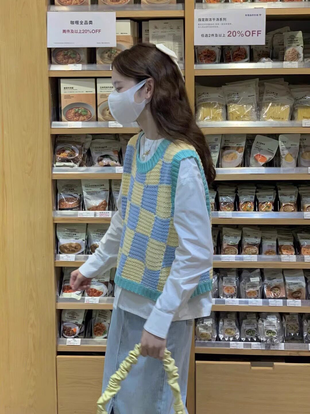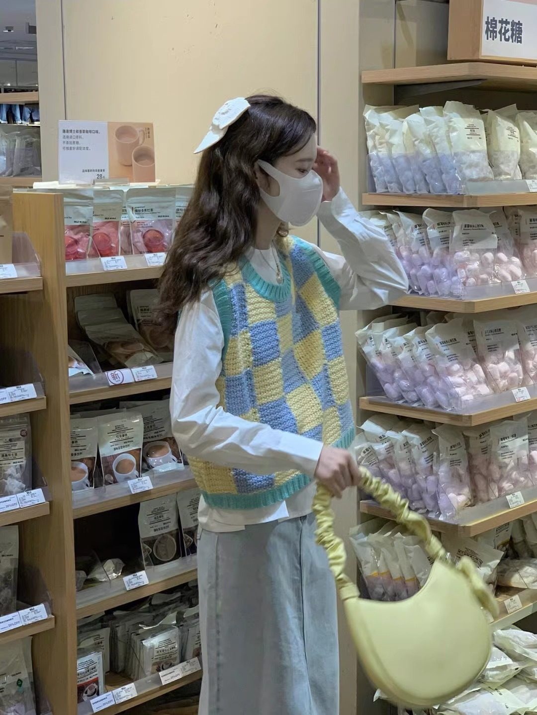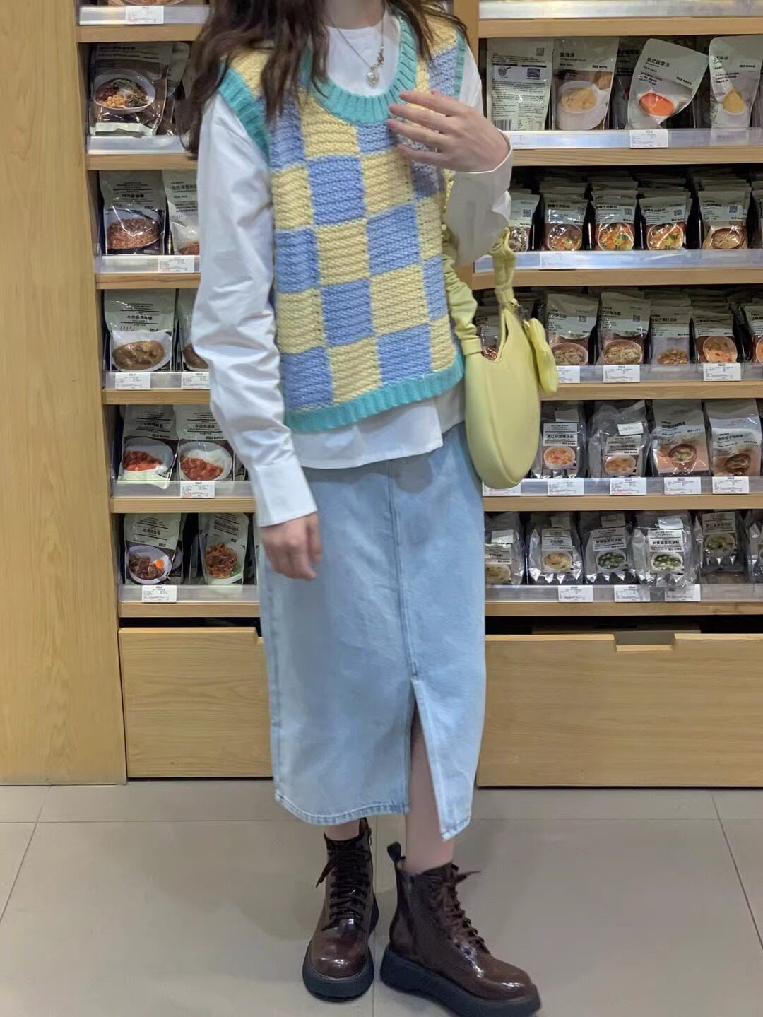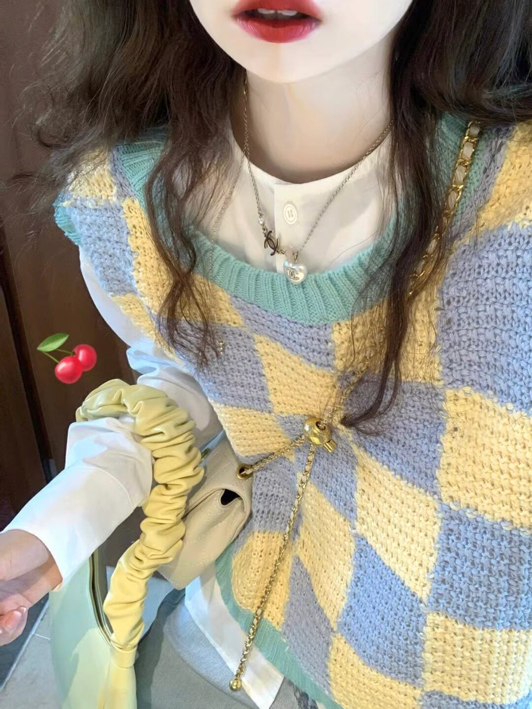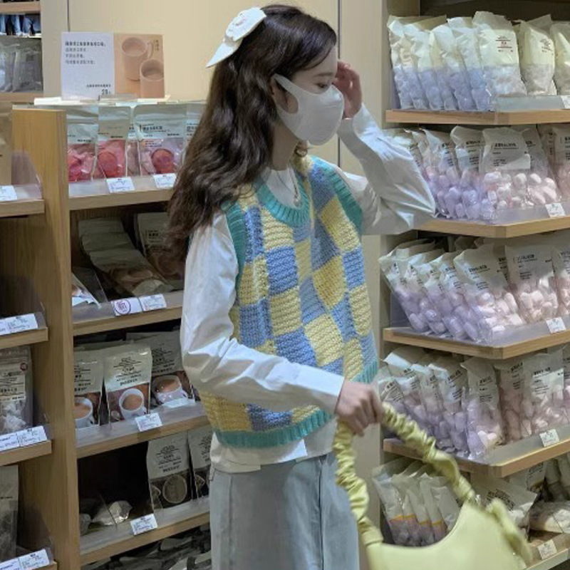 부드러운 우유 격자 무늬 스웨터 조끼 여성 느슨한 게으른 스타일 V 넥 니트 조끼 2024 년 봄과 가을 학생들을위한 올 매치스토어 가기