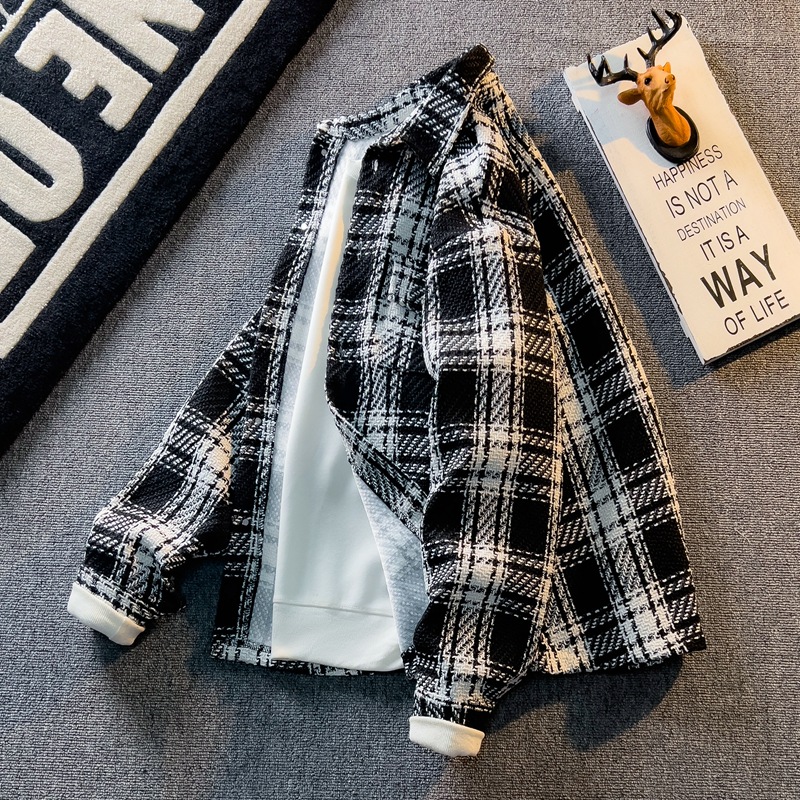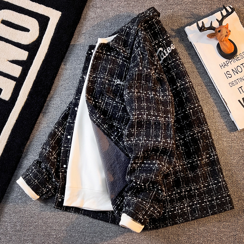 샤넬 스타일 울 코트 남자 짧은 느슨한 캐주얼 올 매치 재킷 봄과 가을 패션 브랜드 하이 엔드 Sense Plaid 셔츠