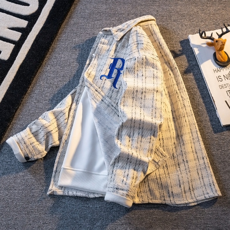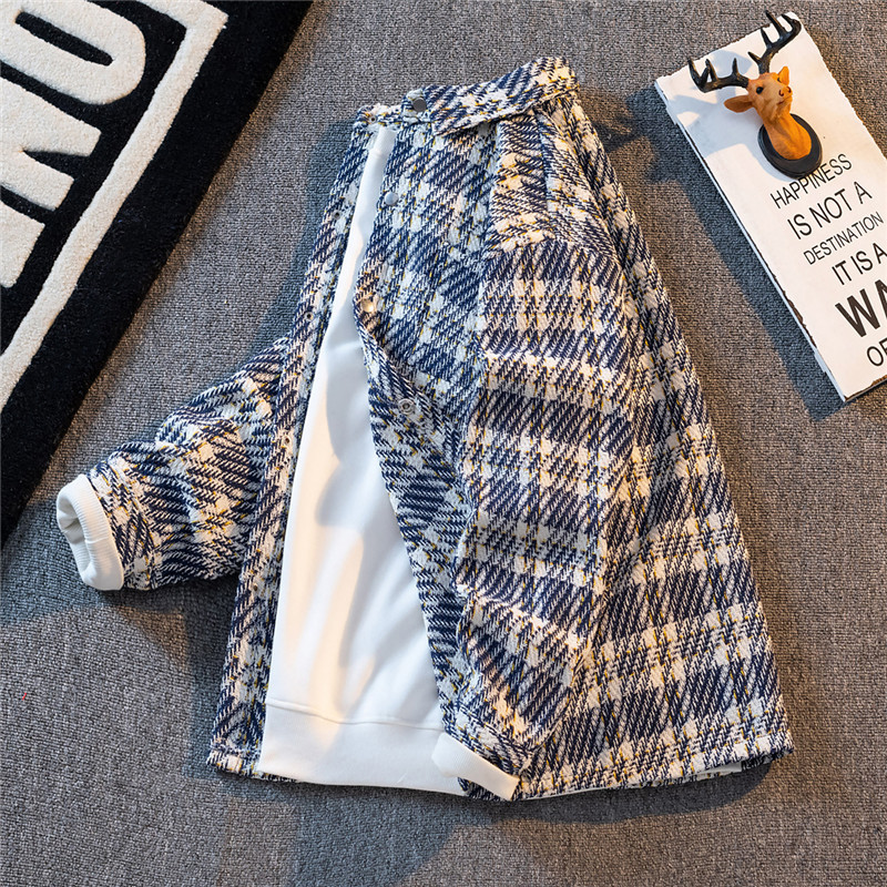 샤넬 스타일 울 코트 남자 짧은 느슨한 캐주얼 올 매치 재킷 봄과 가을 패션 브랜드 하이 엔드 Sense Plaid 셔츠스토어 가기