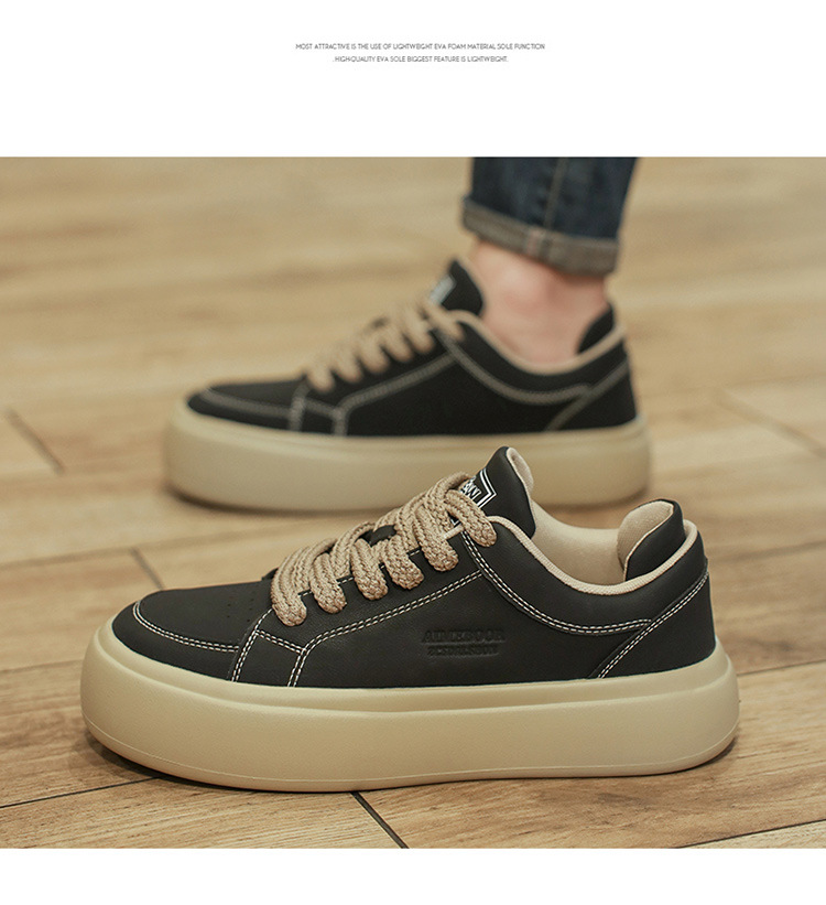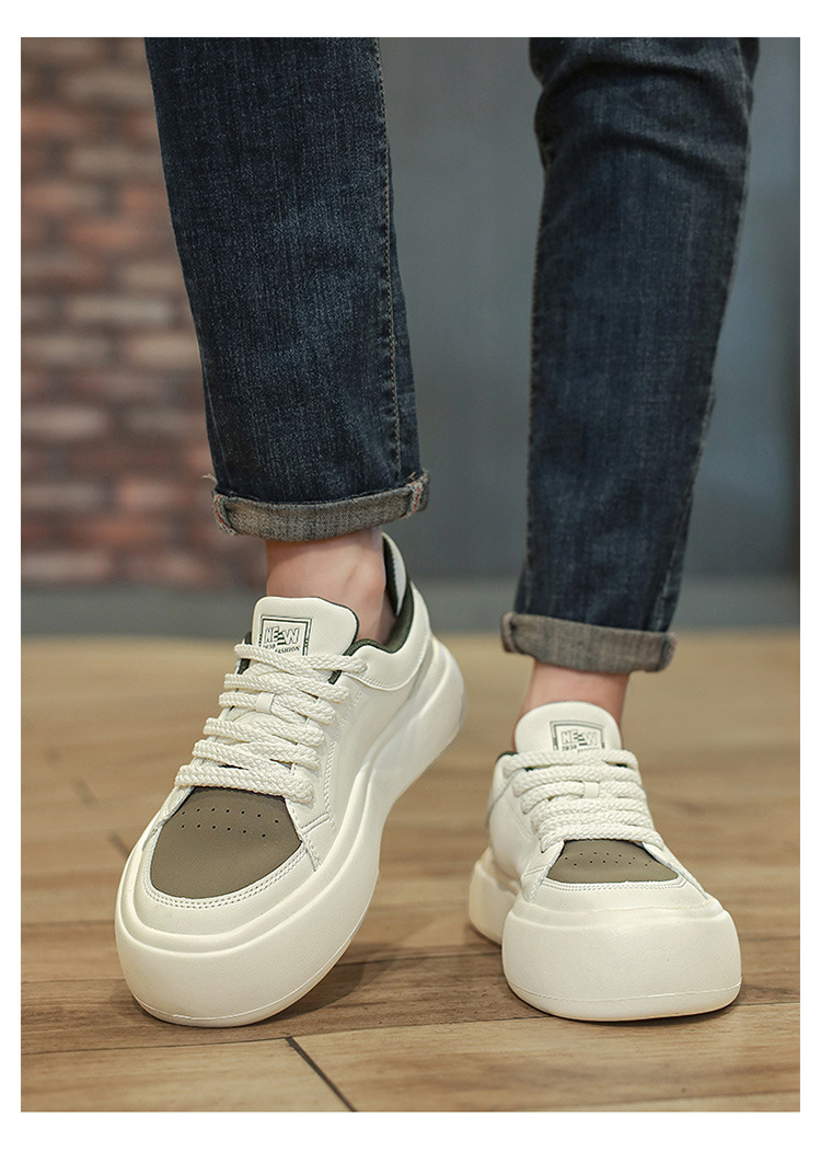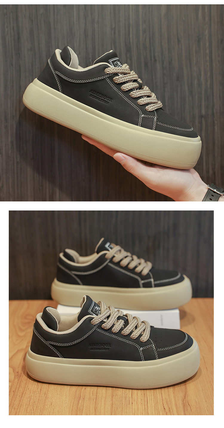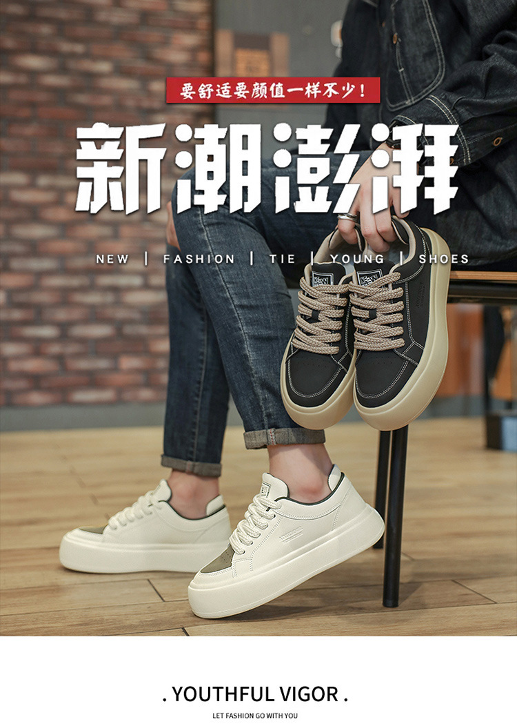 남성 겨울용 블랙 다용도 캐주얼 두꺼운 밑창 스니커즈, 틈새 디자인, 청소년용 천연 가죽 스포츠 키높이 패딩 슈즈스토어 가기