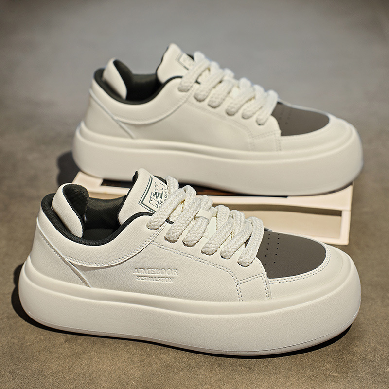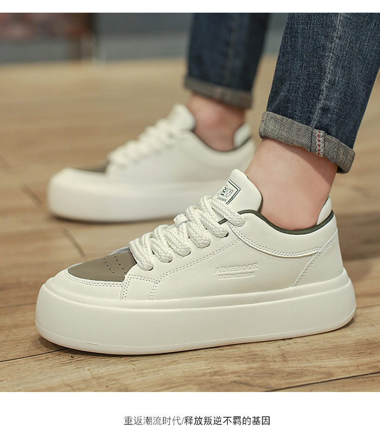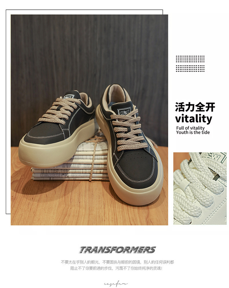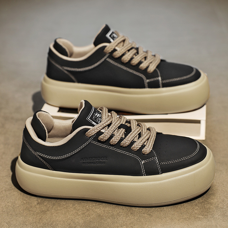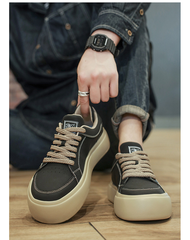 남성 겨울용 블랙 다용도 캐주얼 두꺼운 밑창 스니커즈, 틈새 디자인, 청소년용 천연 가죽 스포츠 키높이 패딩 슈즈스토어 가기