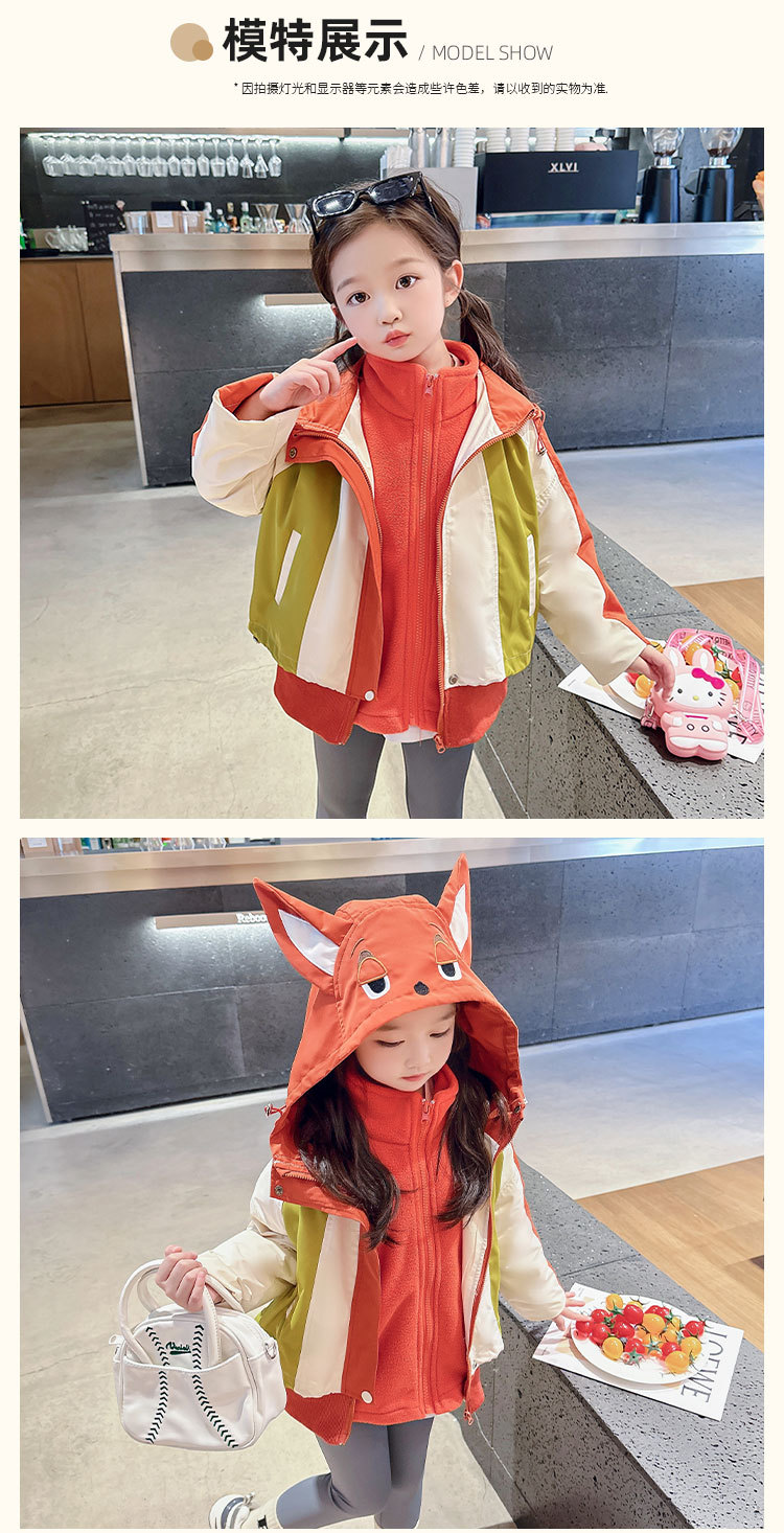 소녀의 여우 만화 3 대 1 재킷 가을과 겨울 새로운 어린이 서양식 소녀의 최고 분리 가능스토어 가기