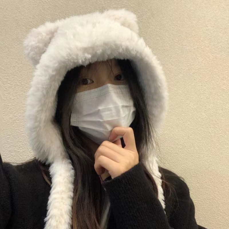 24 년 새로운 턱시도 곰 모자 플러시 귀여운 따뜻한 귀 보호 여성의 겨울 한국 버전 올 매치 그물 레드 울 모자스토어 가기