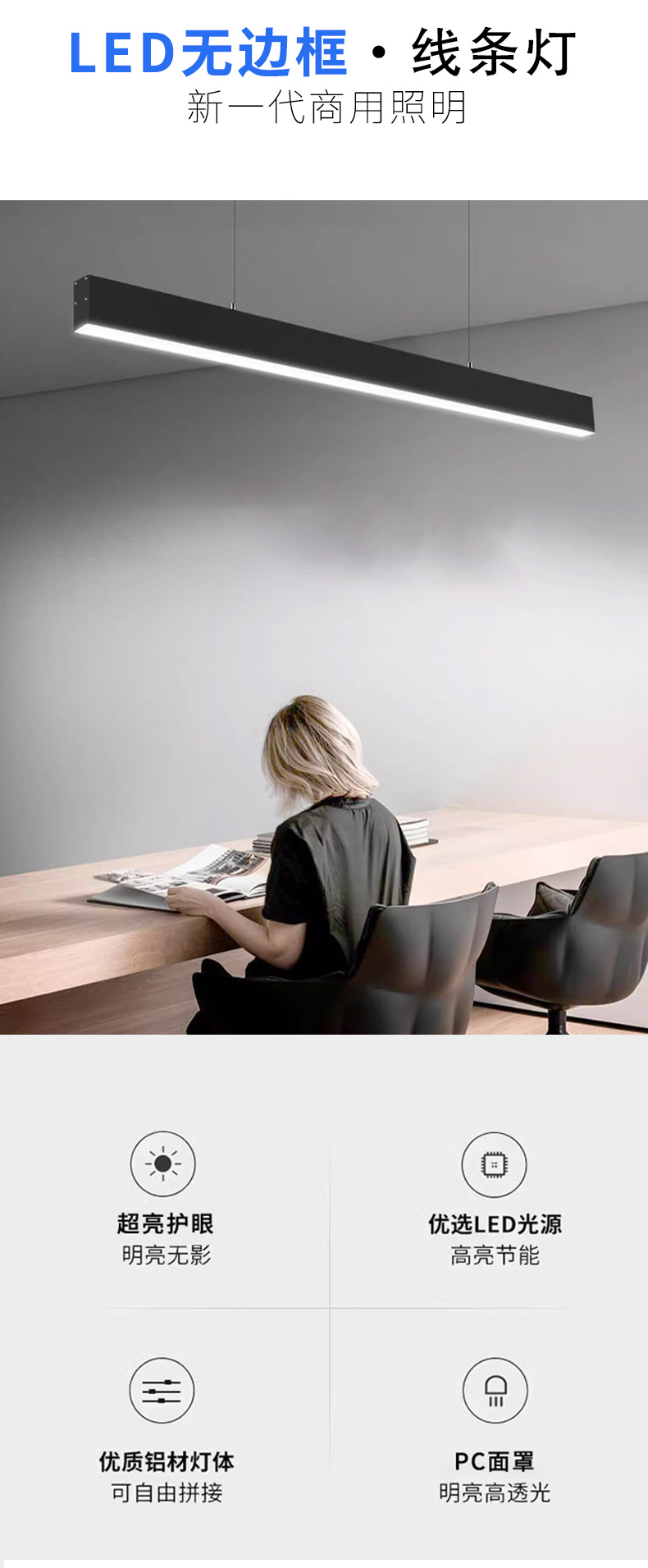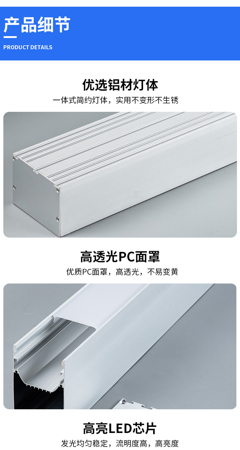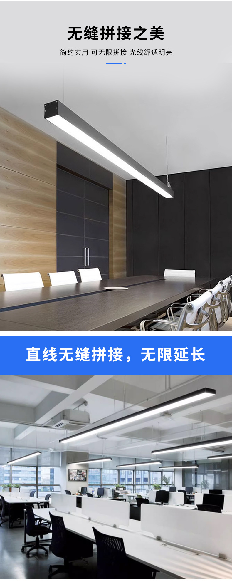 LED 스트립 조명, 쇼핑몰, 슈퍼마켓, 사무실, 회의실, 체육관용 무결점 접합 알루미늄 프로파일 사무실 조명스토어 가기