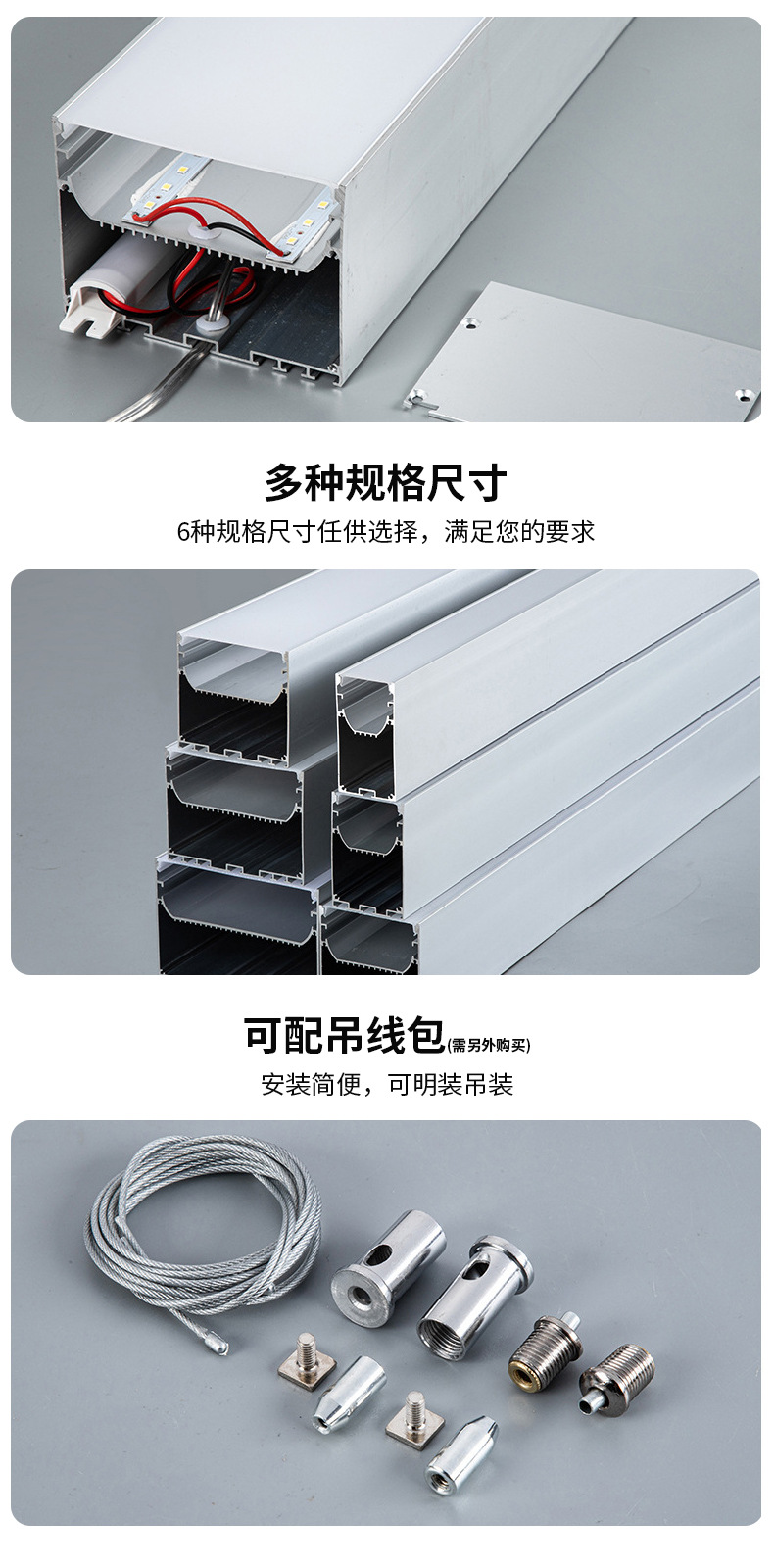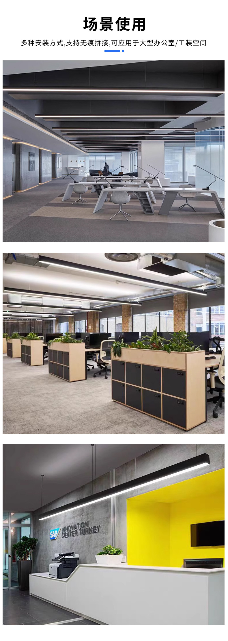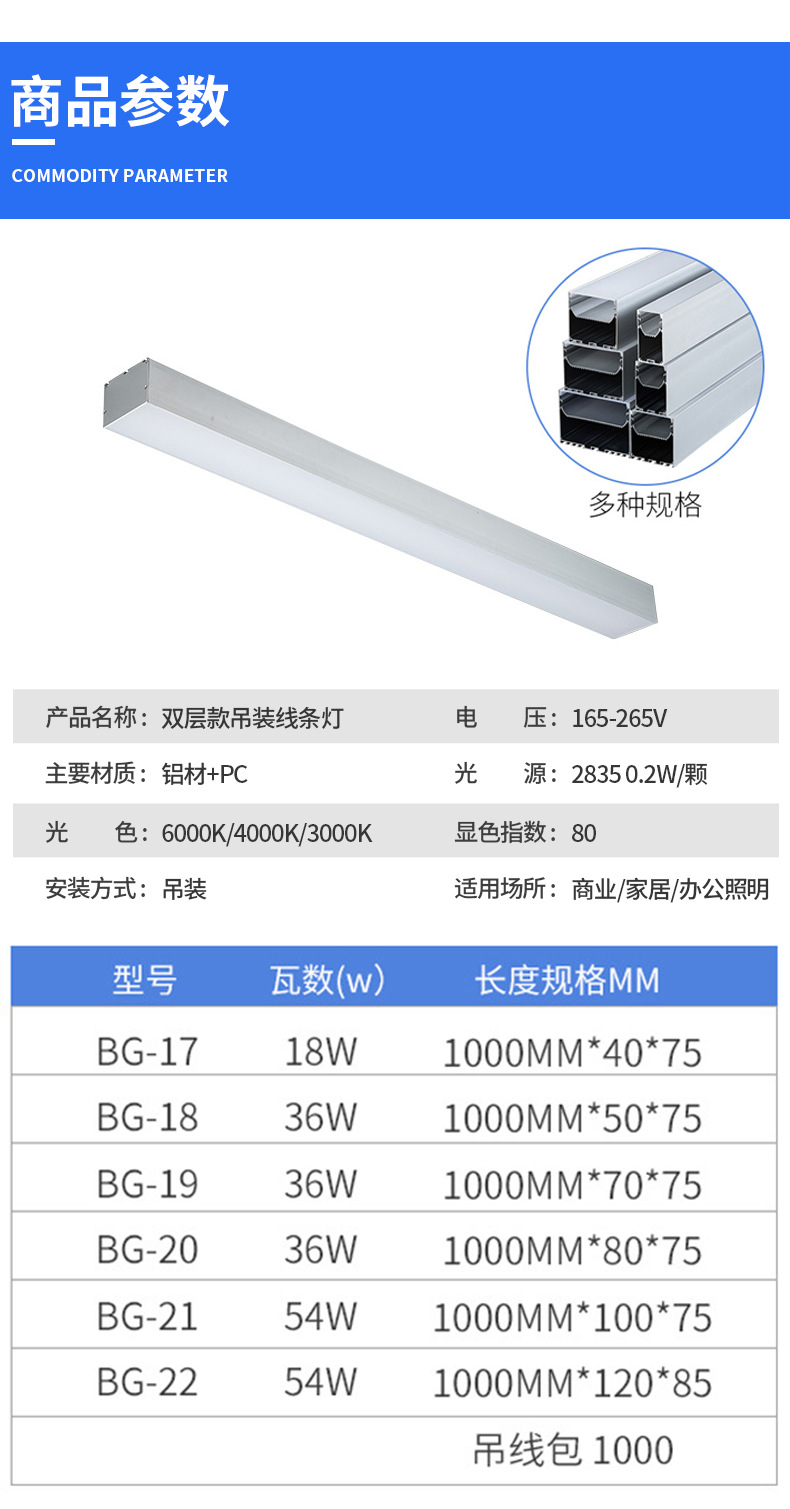 LED 스트립 조명, 쇼핑몰, 슈퍼마켓, 사무실, 회의실, 체육관용 무결점 접합 알루미늄 프로파일 사무실 조명스토어 가기
