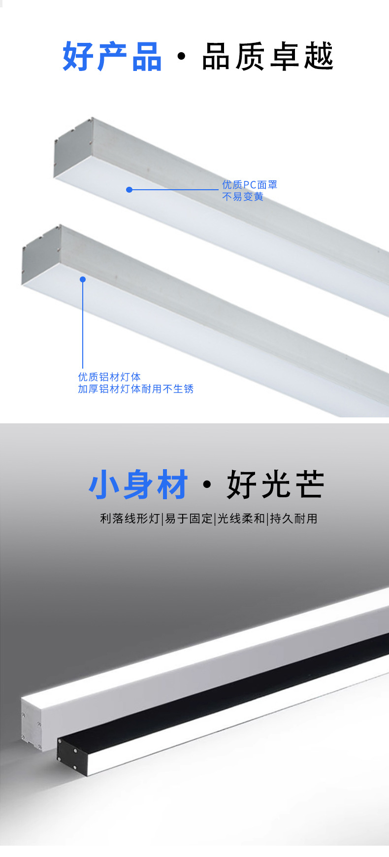 LED 스트립 조명, 쇼핑몰, 슈퍼마켓, 사무실, 회의실, 체육관용 무결점 접합 알루미늄 프로파일 사무실 조명