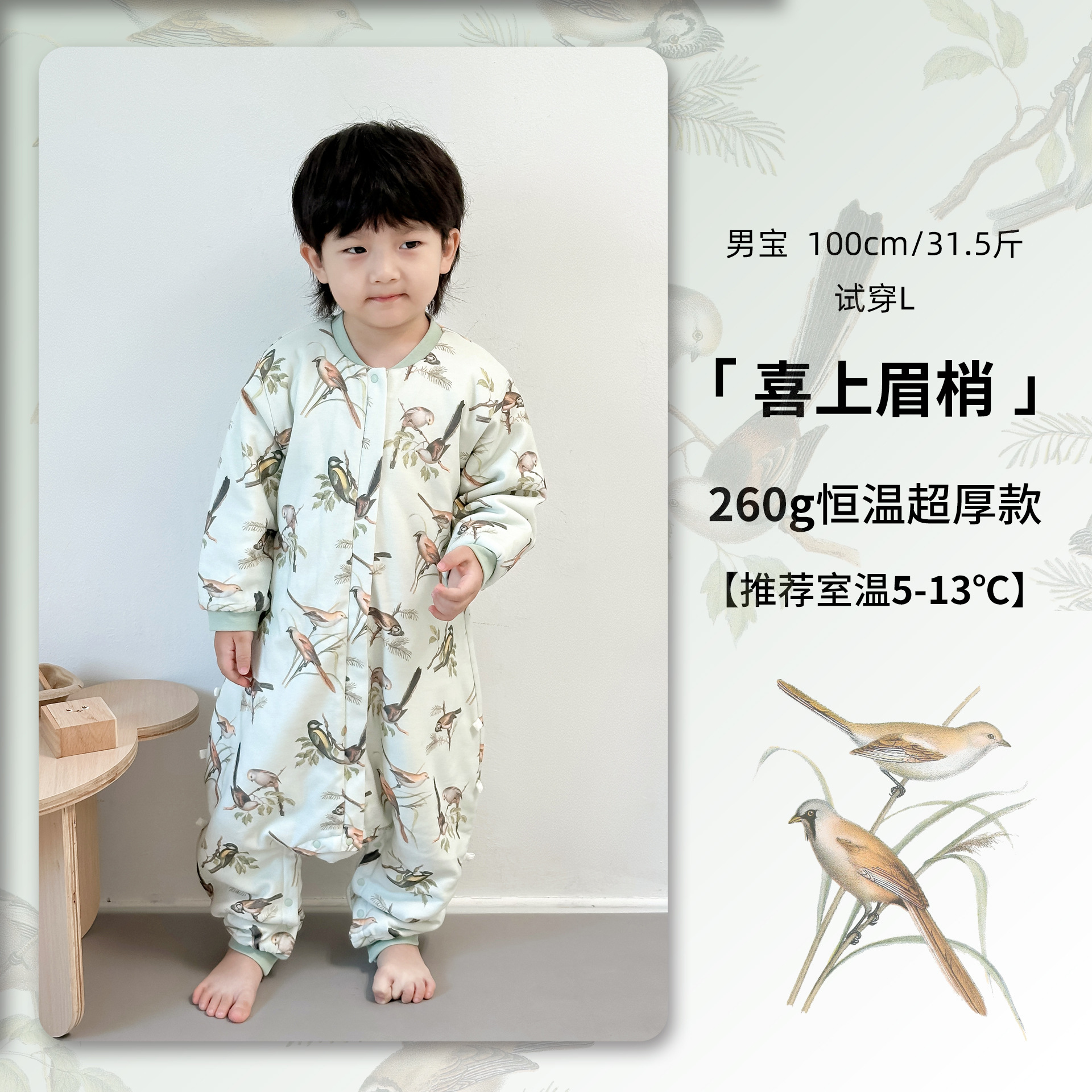 • M 의류 길이 80cm (권장 키 85-95cm) 1-2세에게 적합