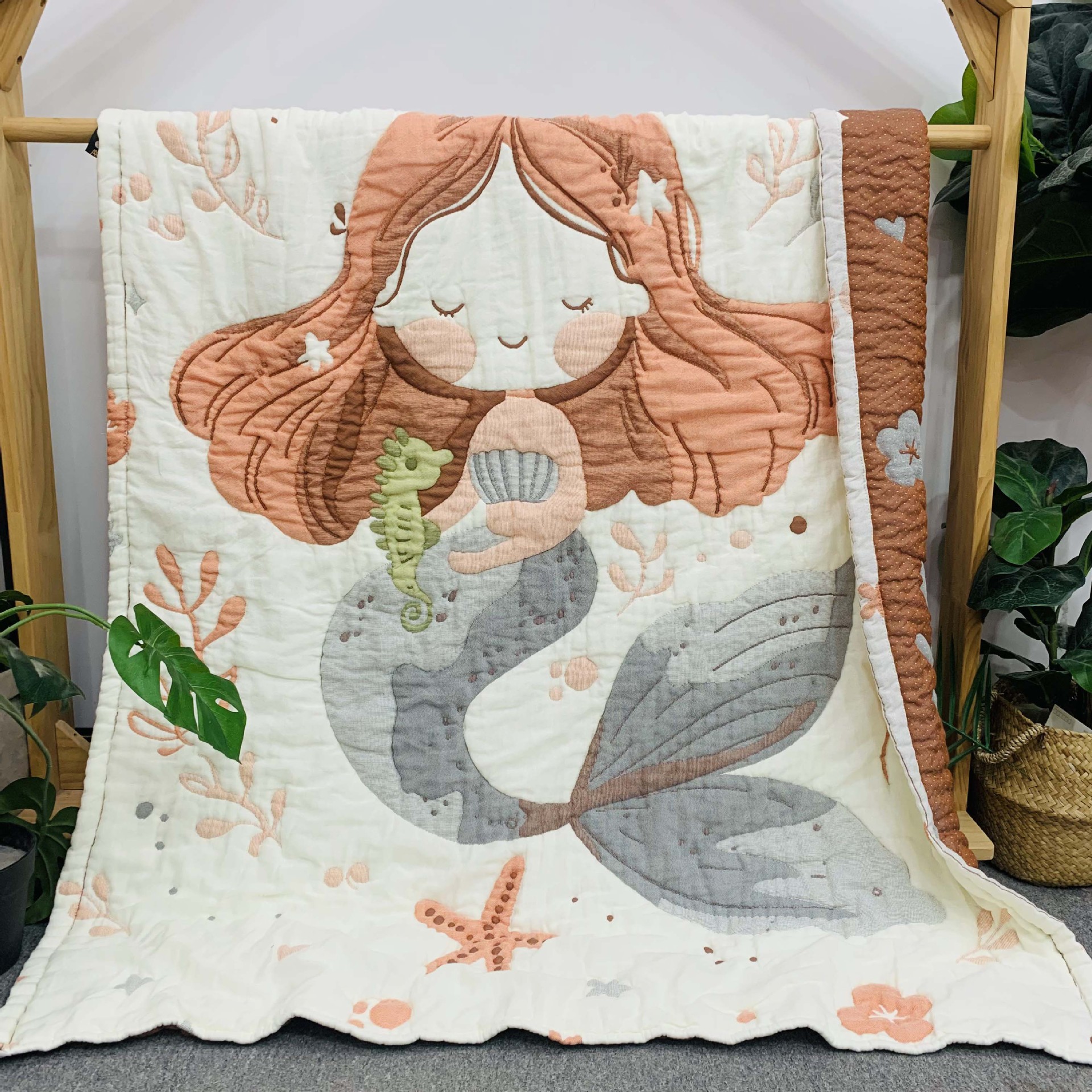 새로운 유치원 에어컨 퀼트 여름 시원한 이불 봄과 가을 순면 거즈 성인 어린이 퀼트 원사 염색 자카드 거즈 담요