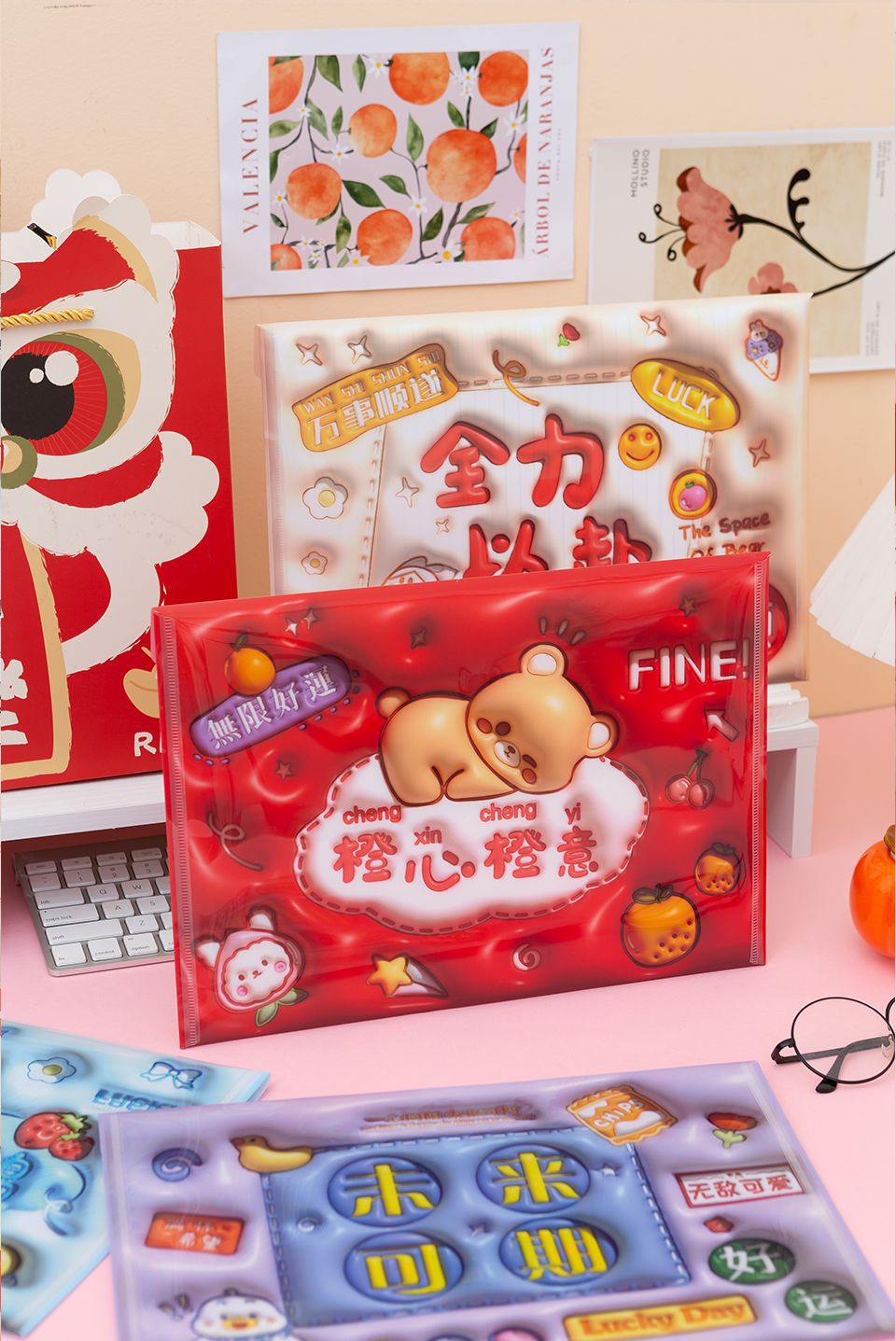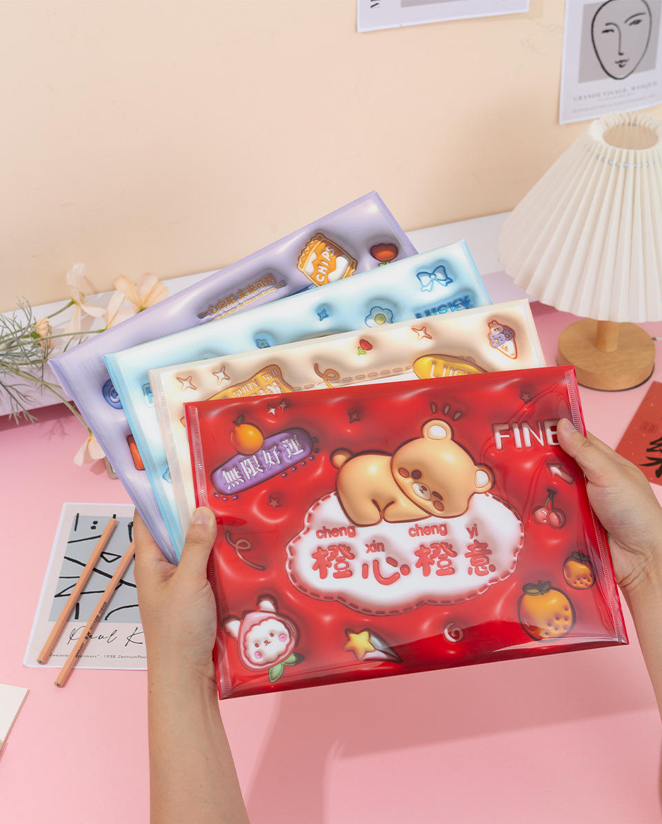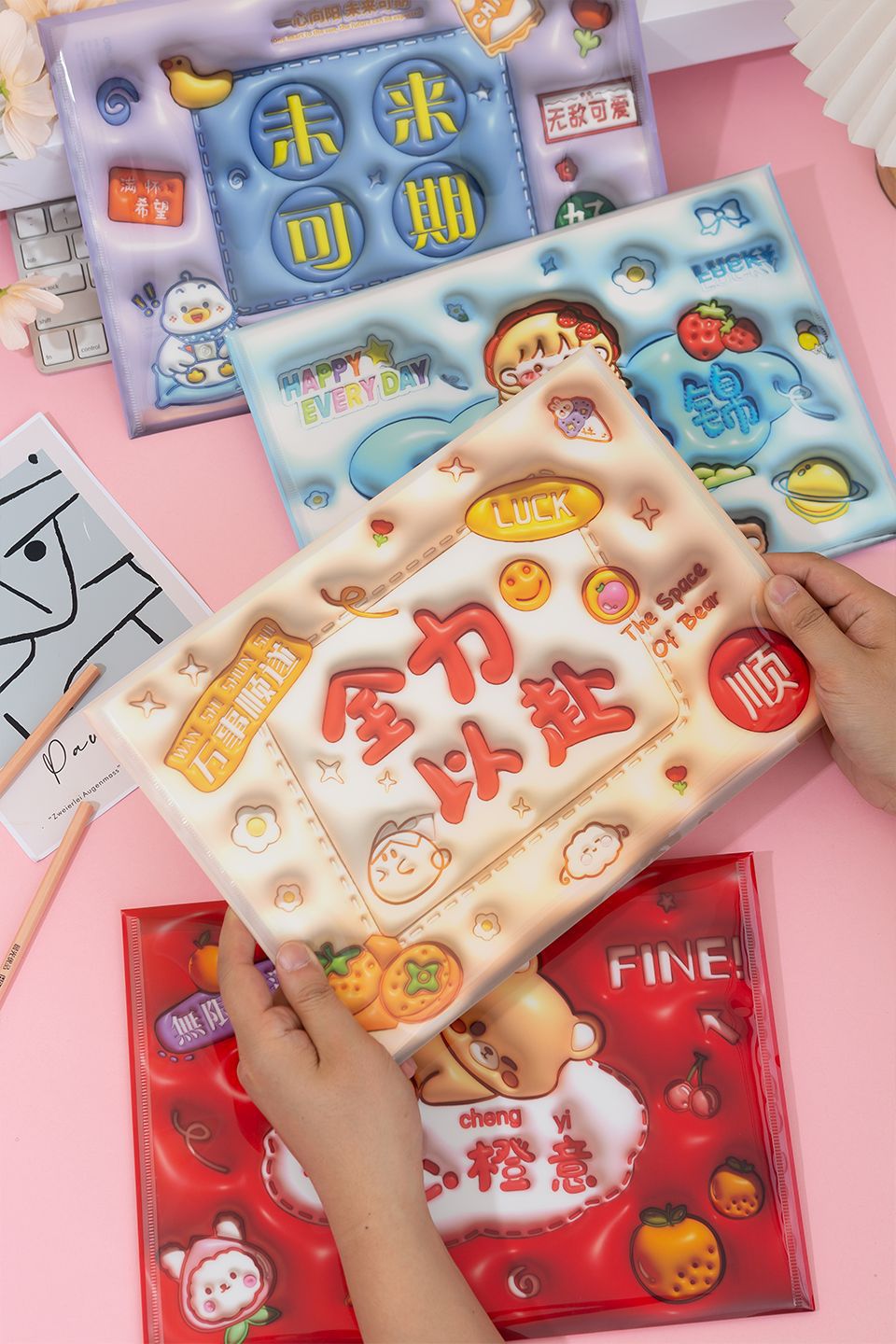 만화 스테레오 A4 파일 가방 3D 확장 학생 스냅 가방 테스트 종이 파일 저장 가방 A4 투명 정보 가방스토어 가기