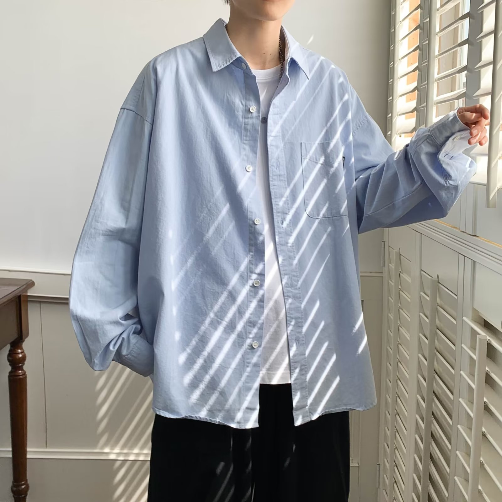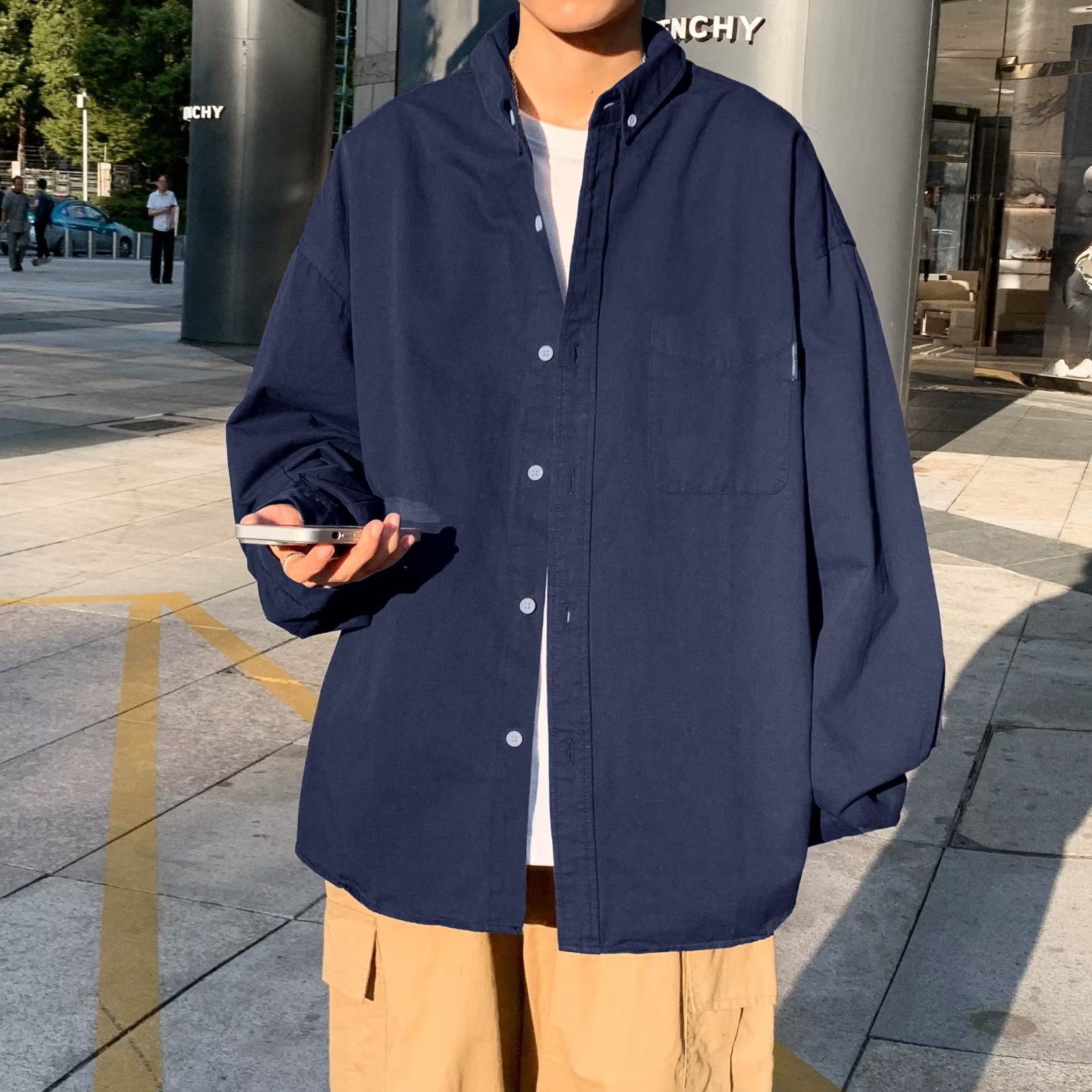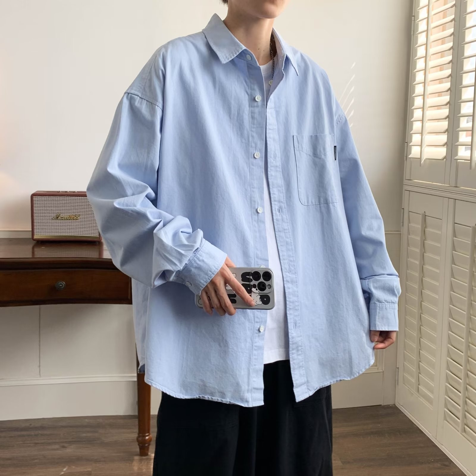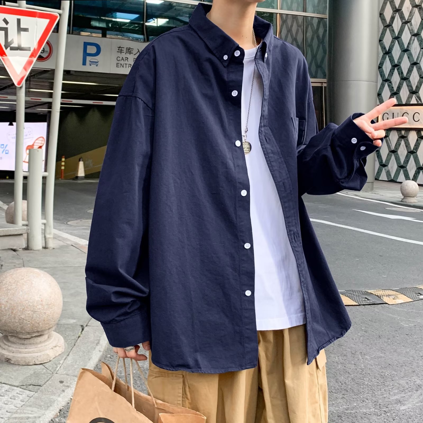 홍콩 스타일 체크 무늬 셔츠 남자의 봄과 가을 강아지 잘 생긴 하이 엔드 긴팔 셔츠 유행 브랜드 일본 스타일 가을 재킷스토어 가기