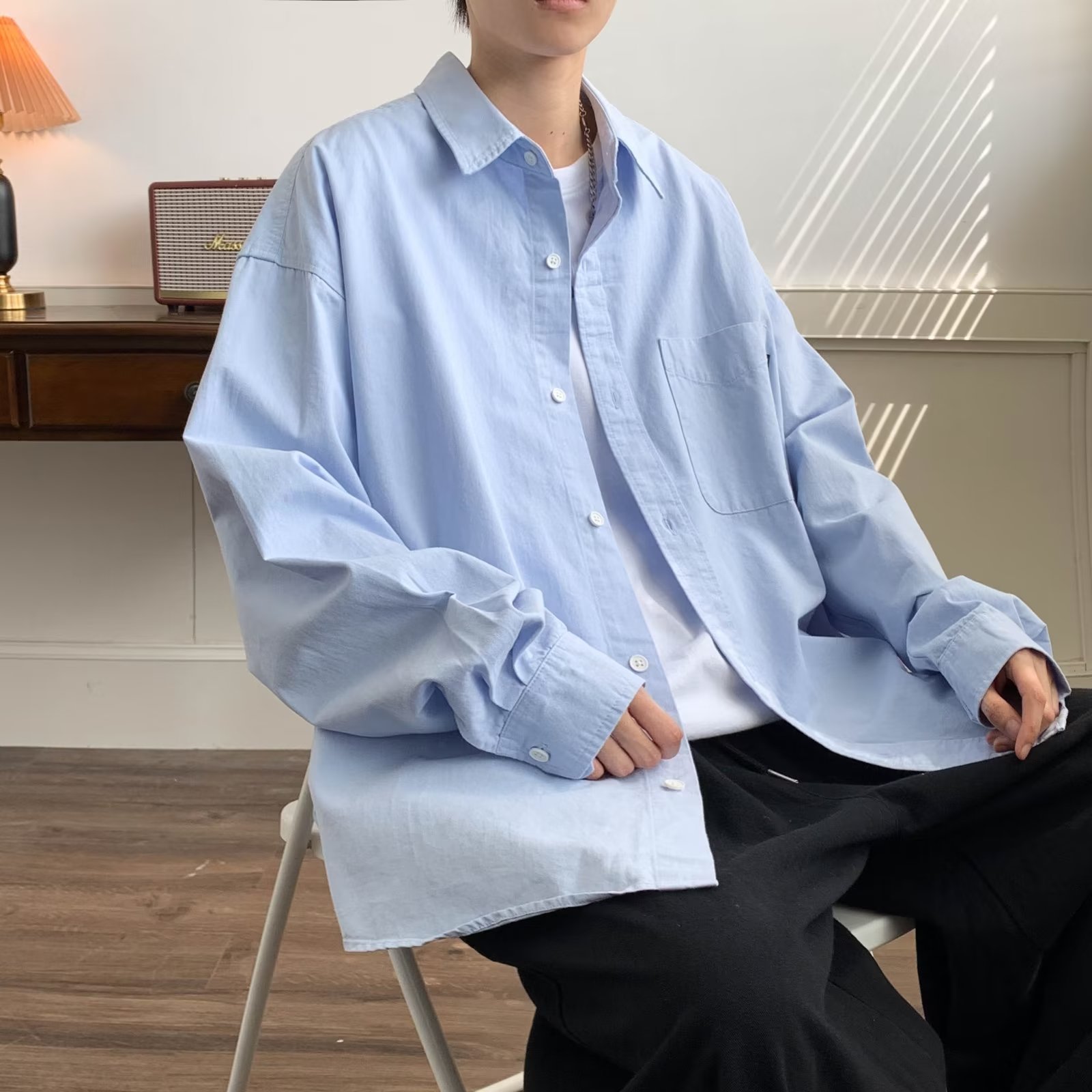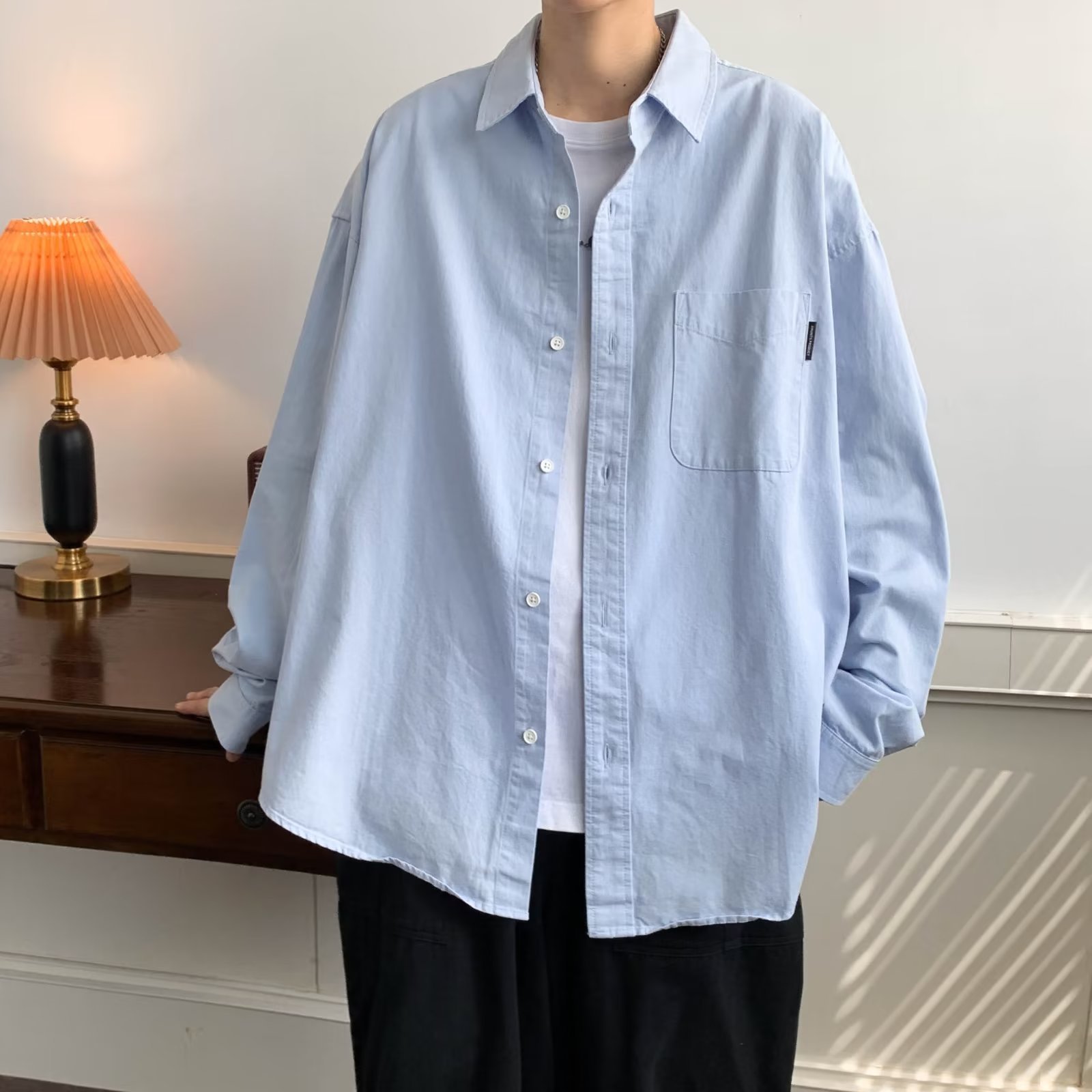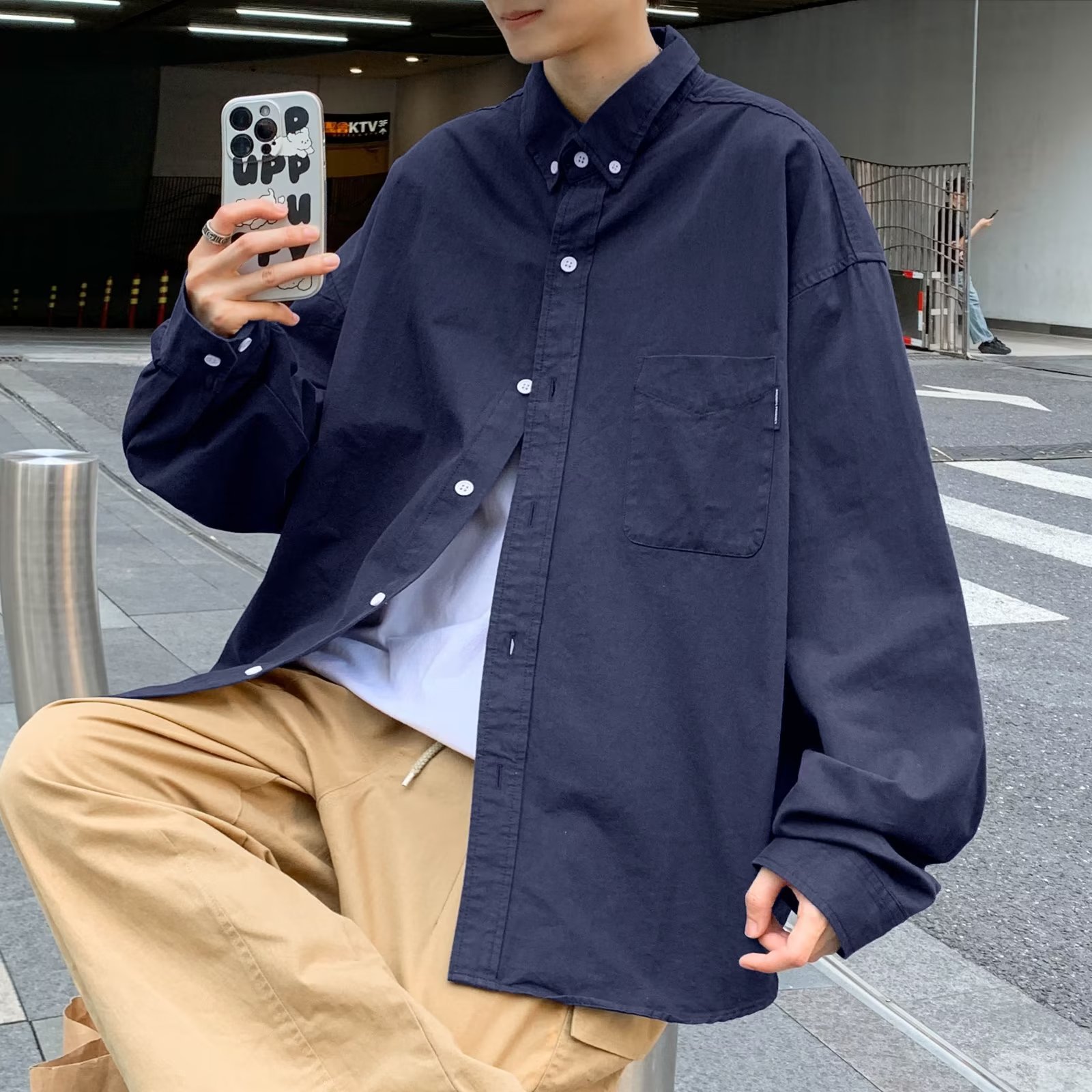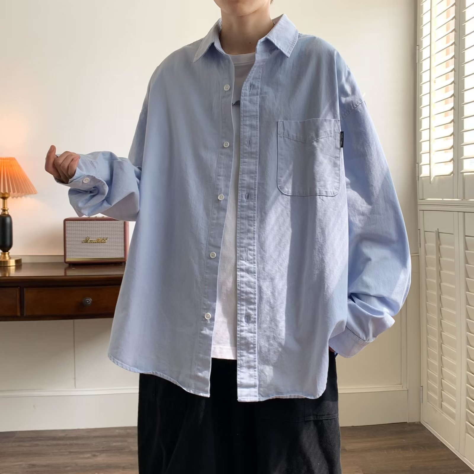 홍콩 스타일 체크 무늬 셔츠 남자의 봄과 가을 강아지 잘 생긴 하이 엔드 긴팔 셔츠 유행 브랜드 일본 스타일 가을 재킷스토어 가기