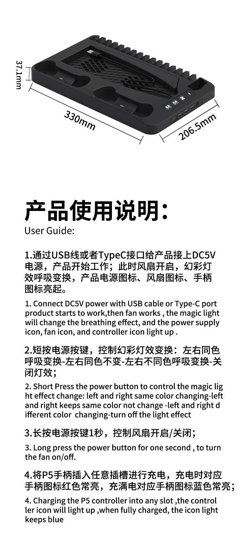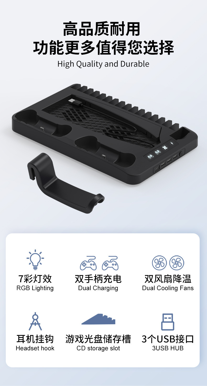 undefinedGAMINJA RGB灯PS5 slim主机散热底座PS5手柄充电座碟片耳机收纳架.