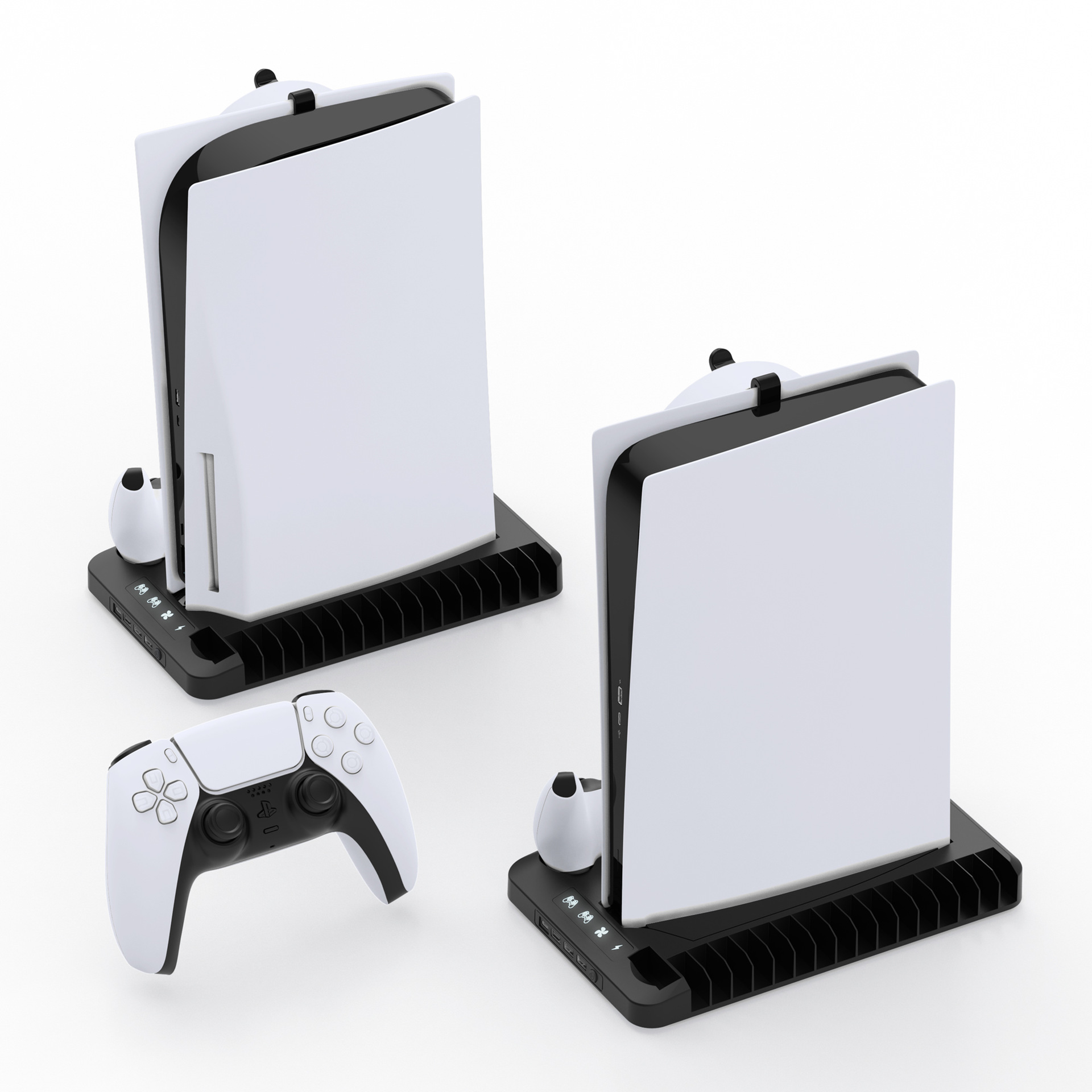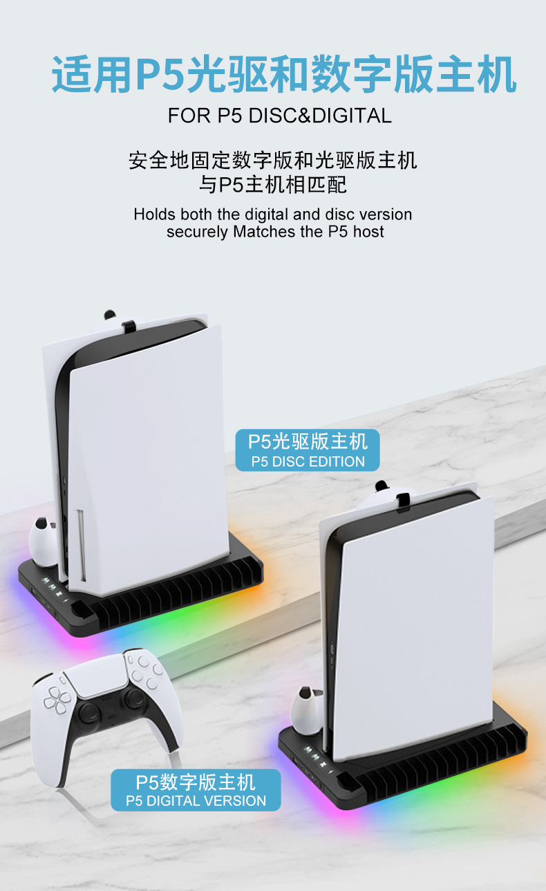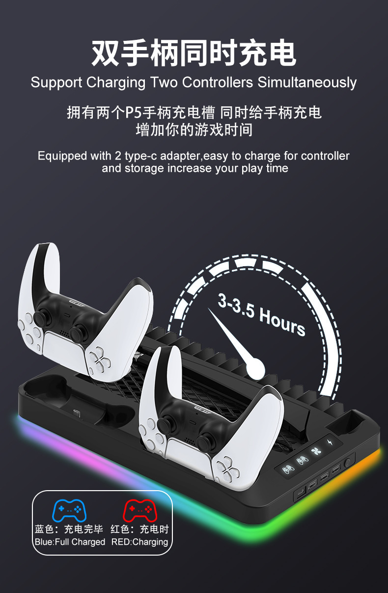 GAMINJA RGB 라이트 PS5 슬림 호스트 냉각베이스 PS5 핸들 충전 스탠드 디스크 헤드셋 스토리지 랙
