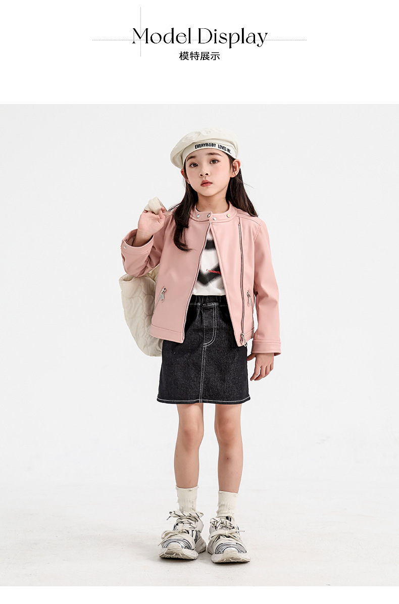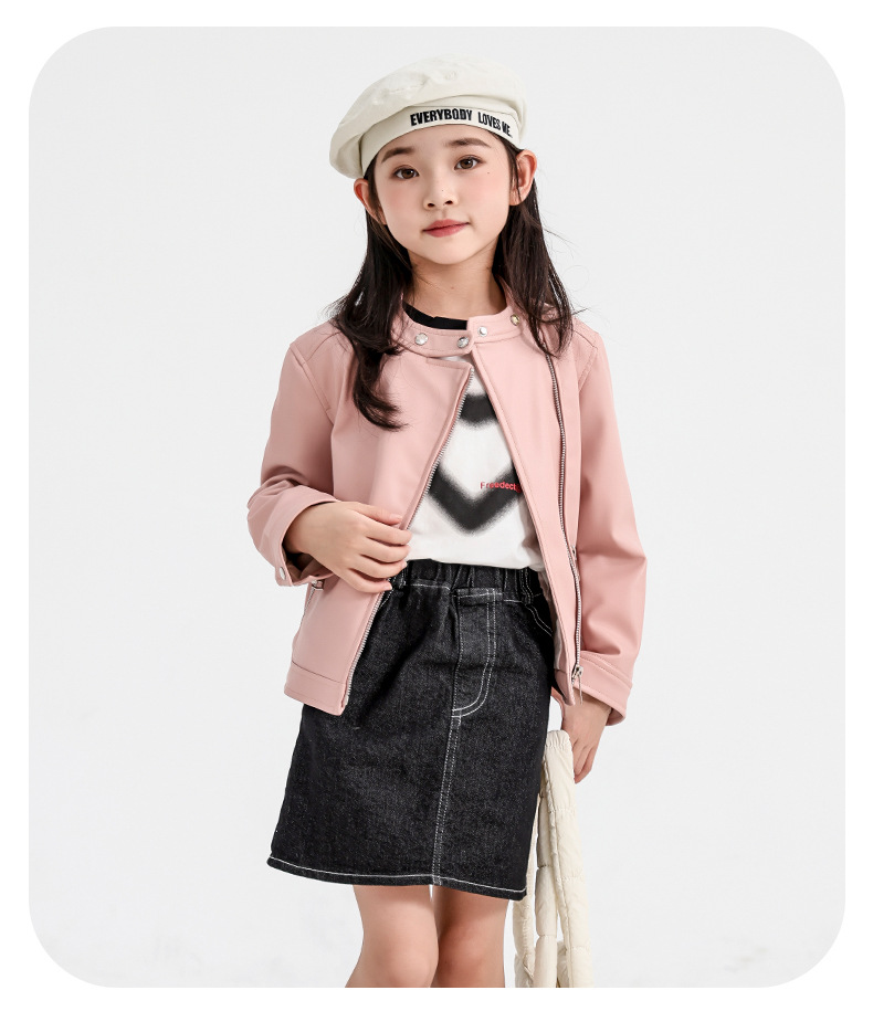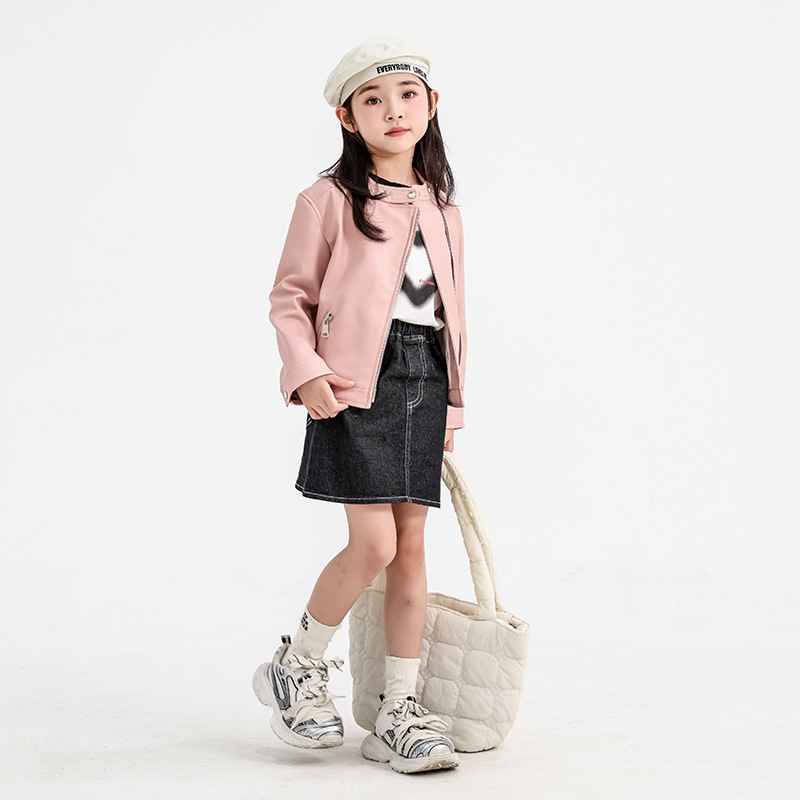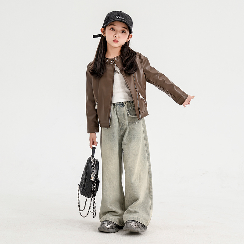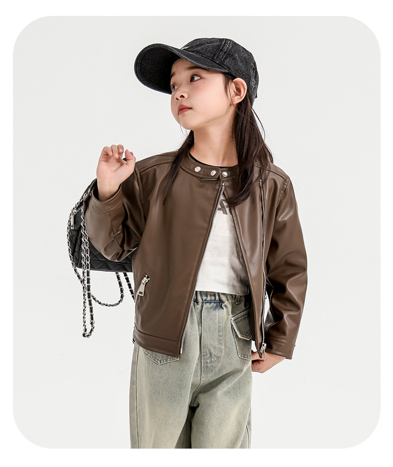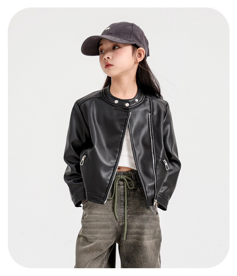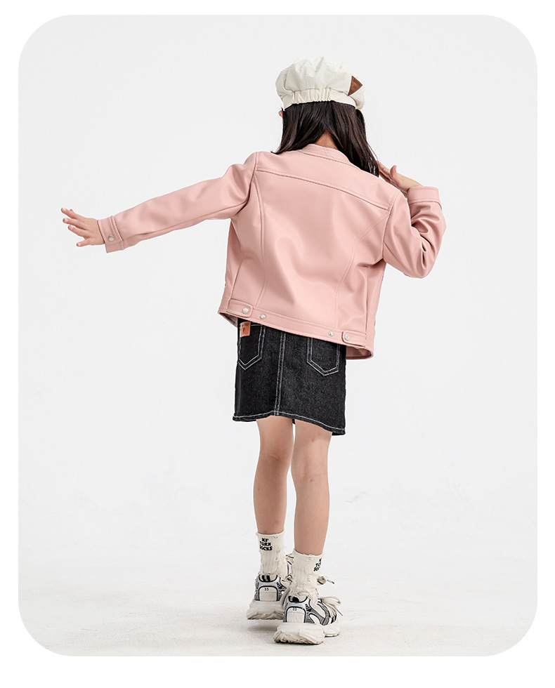 소녀 가죽 자켓 2024 새로운 스타일 재킷 어린이 유행 스타일 칼라 짧은 소녀의 올 매치 한국 스타일 봄과 가을스토어 가기