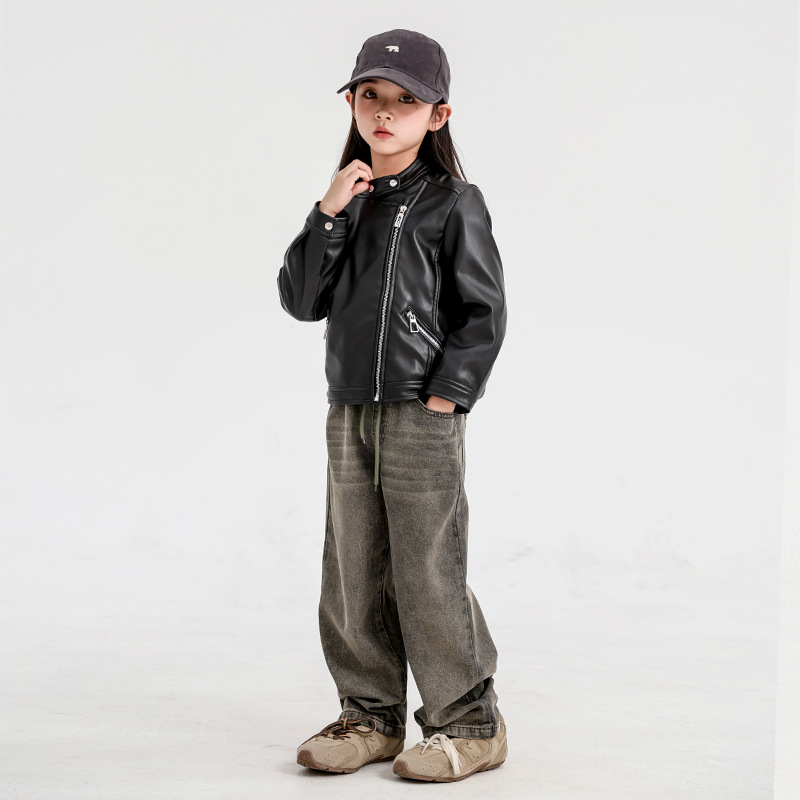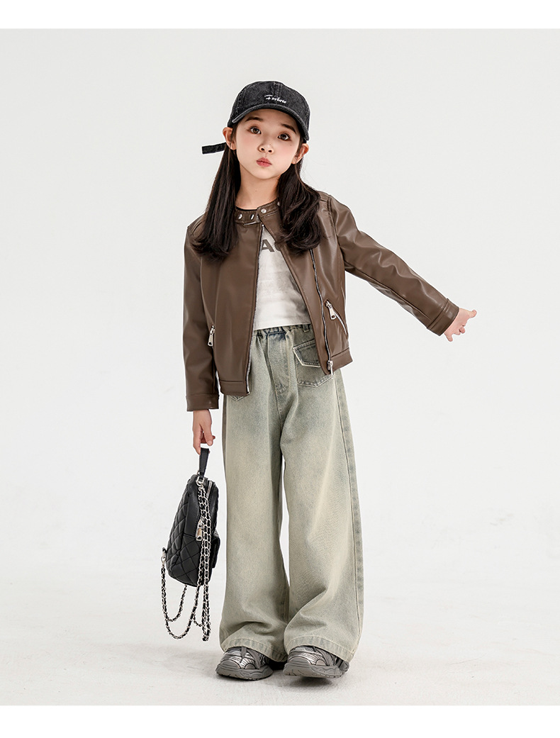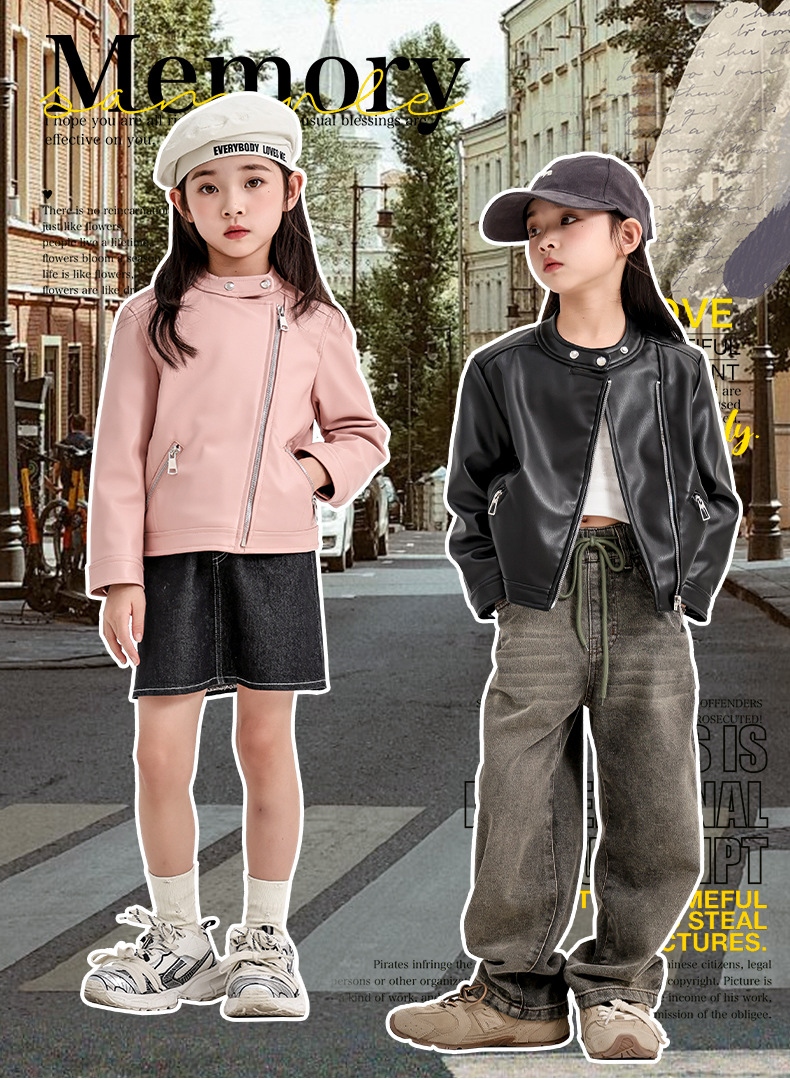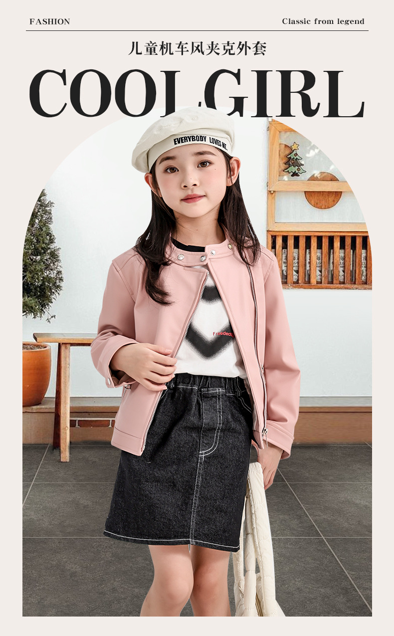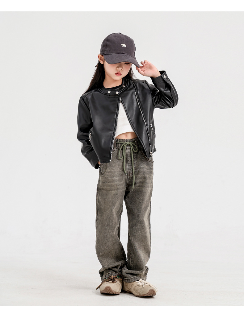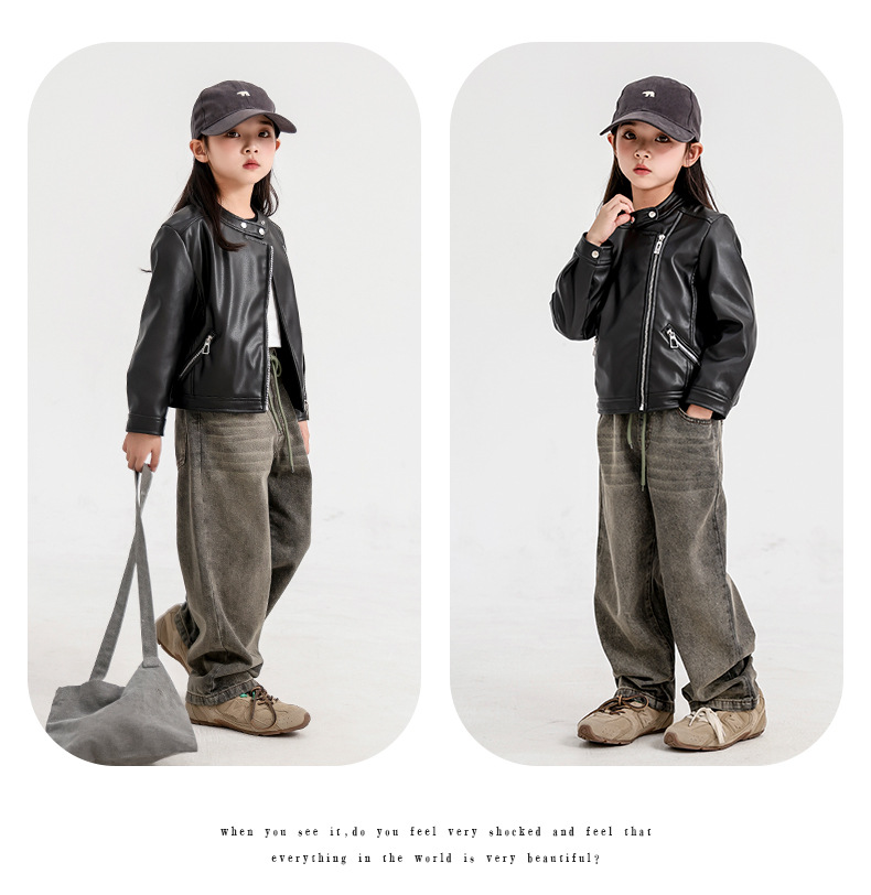 소녀 가죽 자켓 2024 새로운 스타일 재킷 어린이 유행 스타일 칼라 짧은 소녀의 올 매치 한국 스타일 봄과 가을스토어 가기