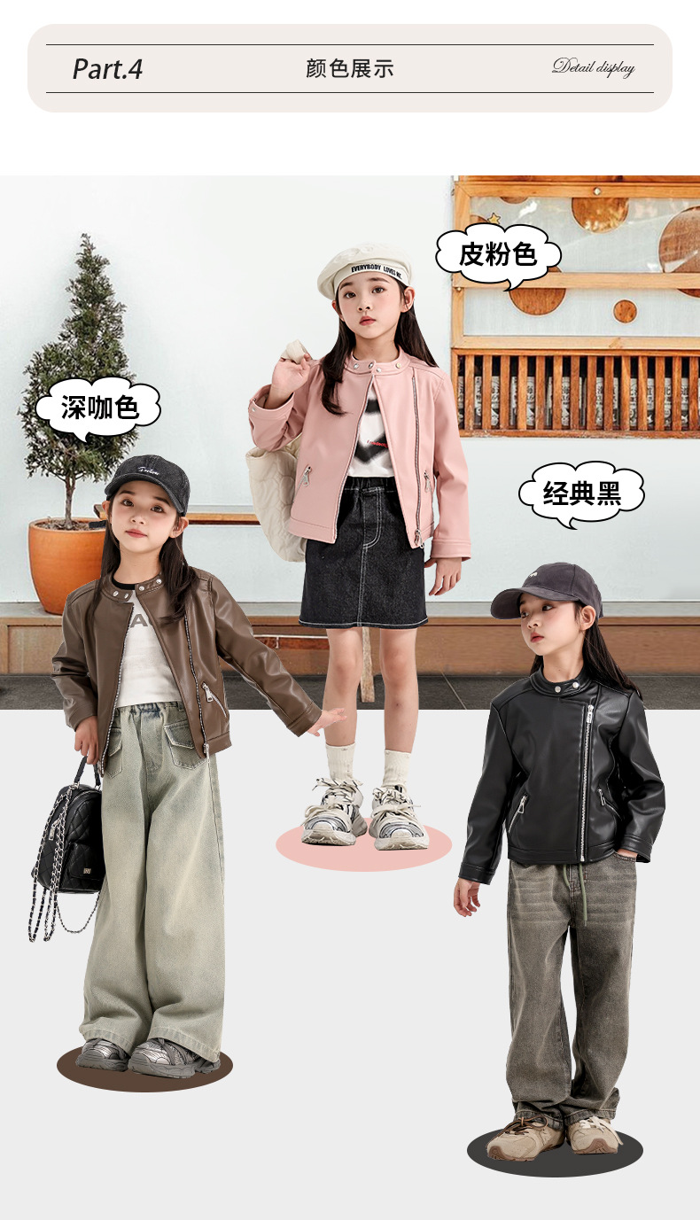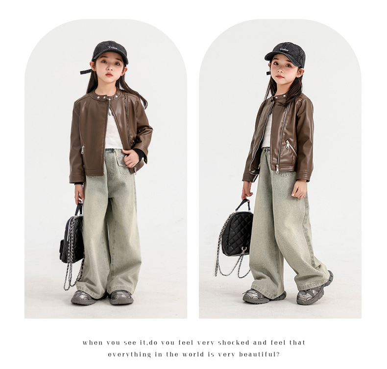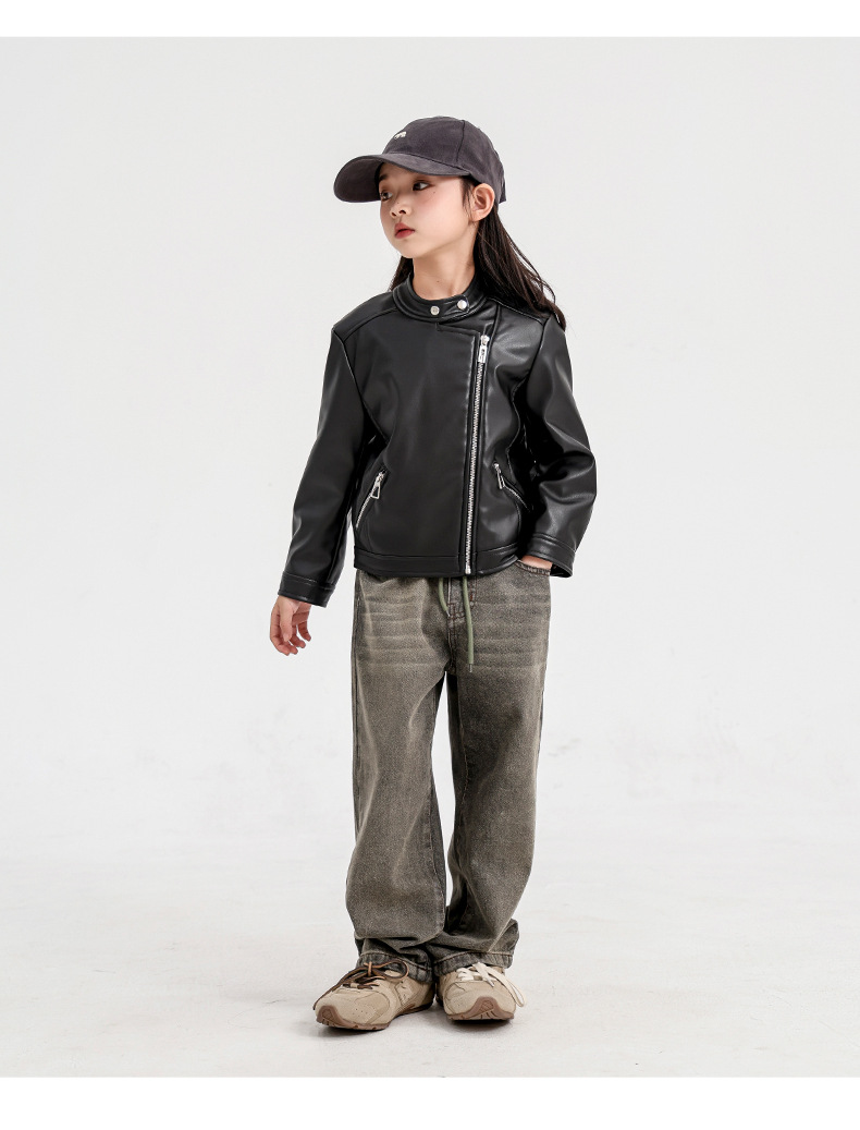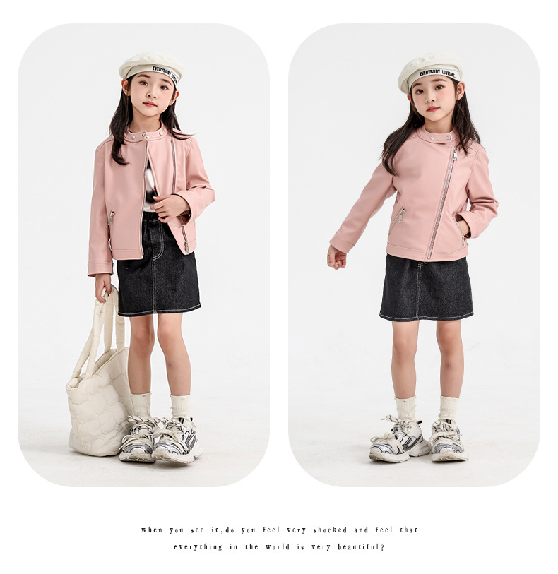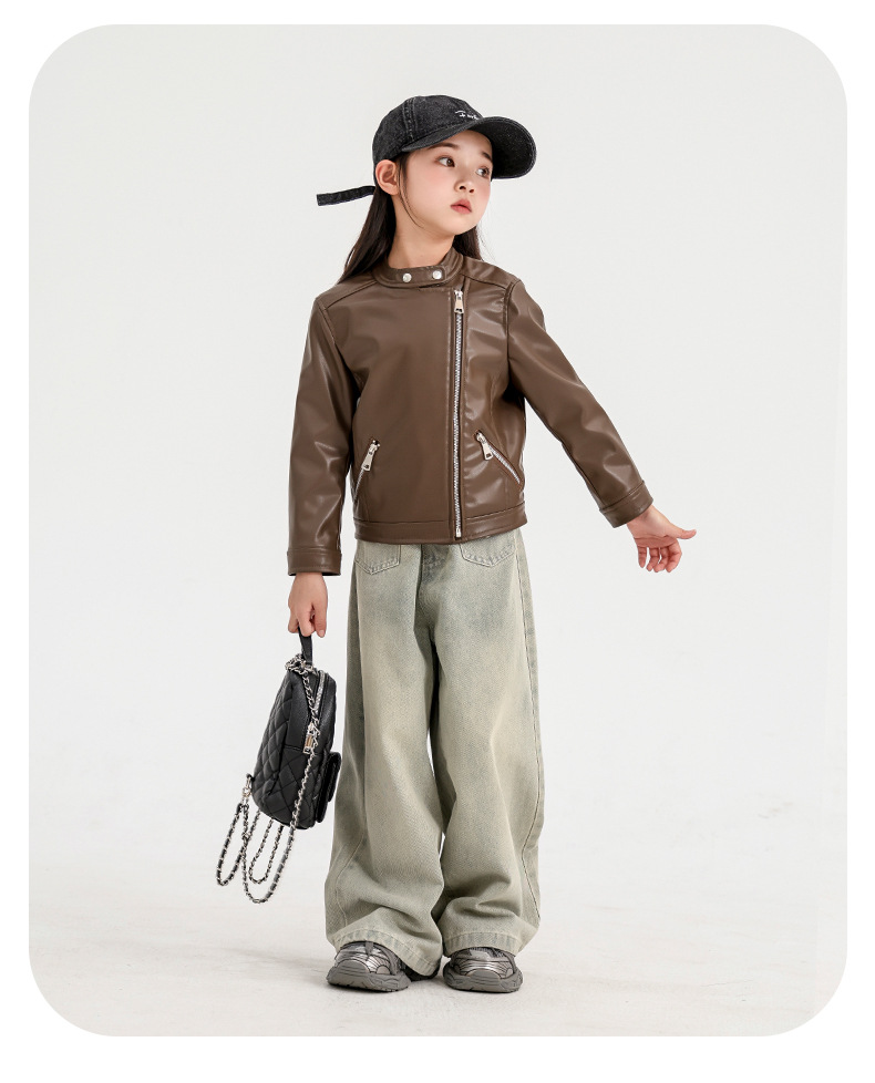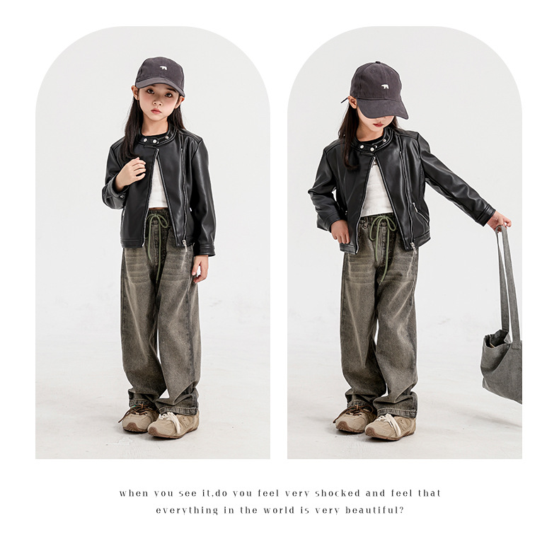 소녀 가죽 자켓 2024 새로운 스타일 재킷 어린이 유행 스타일 칼라 짧은 소녀의 올 매치 한국 스타일 봄과 가을스토어 가기
